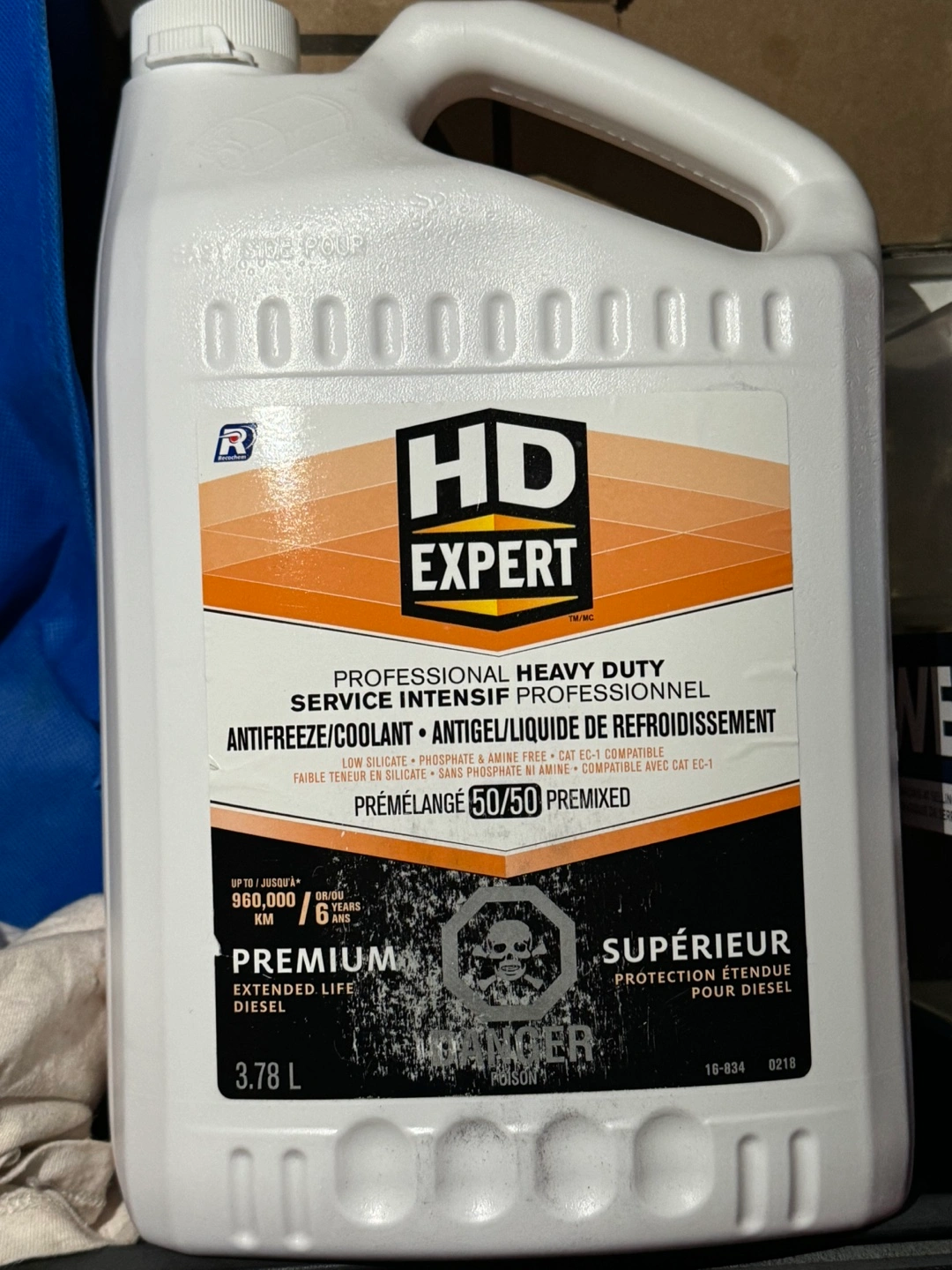 Professional heavy duty antifreeze/coolant. Premixed 50/50. Extended life diesel. Superior protection. 3.78 litre jug. $15 each