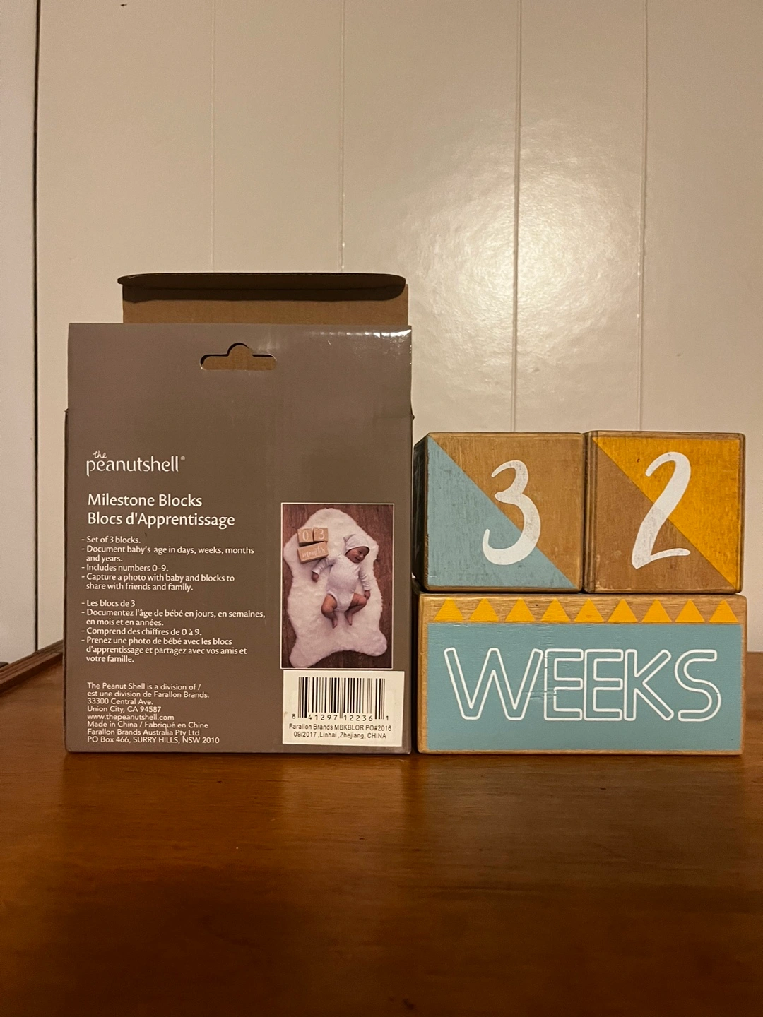 Set of 3 wooden blocks. Show baby's age in days, weeks, months, and years. Numbers 0-9. Great for photos. Share with friends and family.