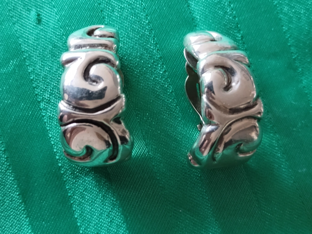 Pair of Zuni .925 full solid silver clip-on Vintage Earrings. Intricate swirling design.