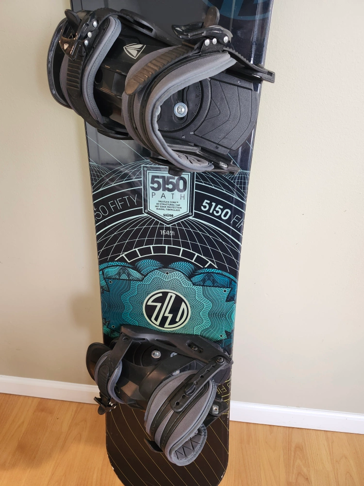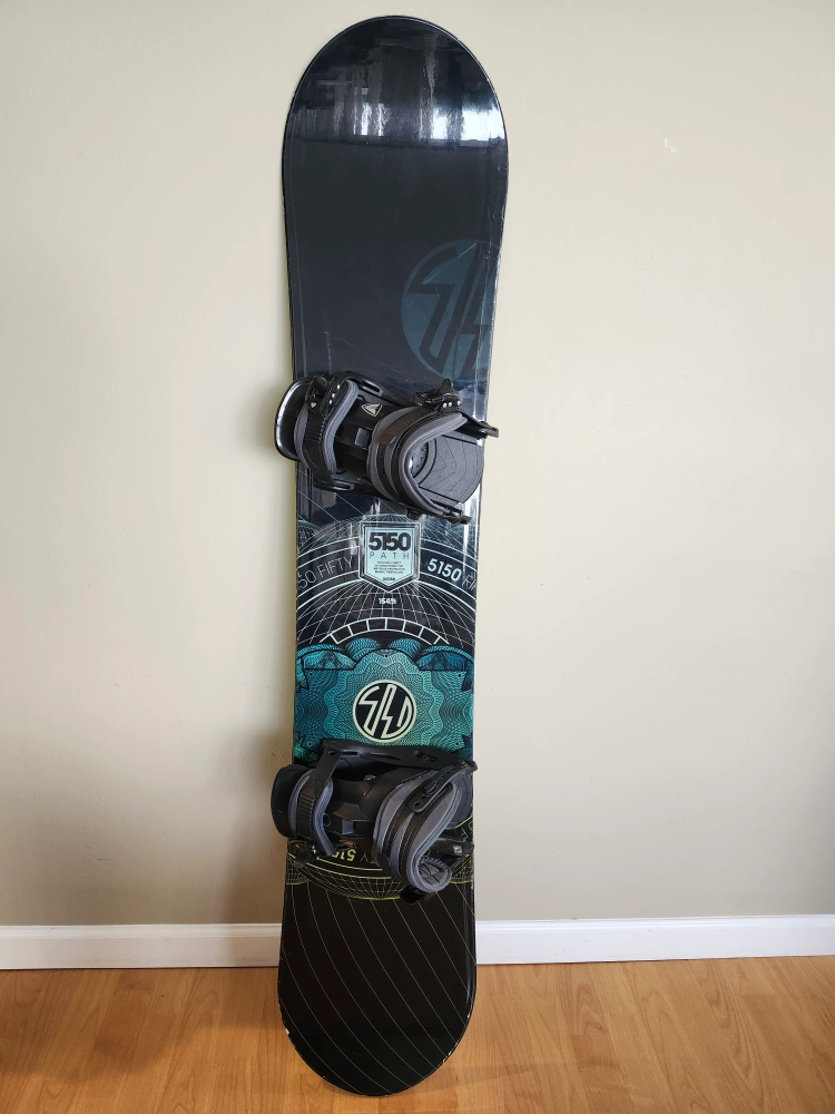 154 cm snowboard and bindings. Bindings are in good condition. Snowboard shows some minor wear.