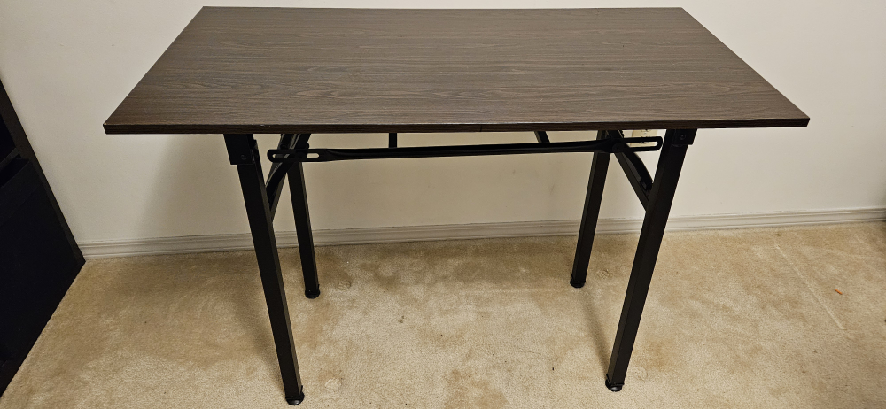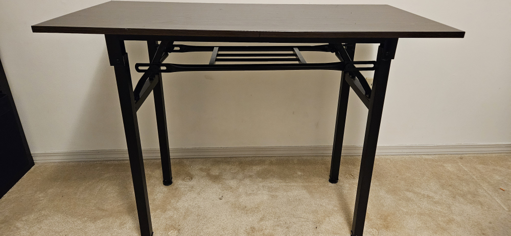 Dark brown folding table. Black metal frame. Easy storage. Ideal for small spaces. No assembly required. PU Richmond only!