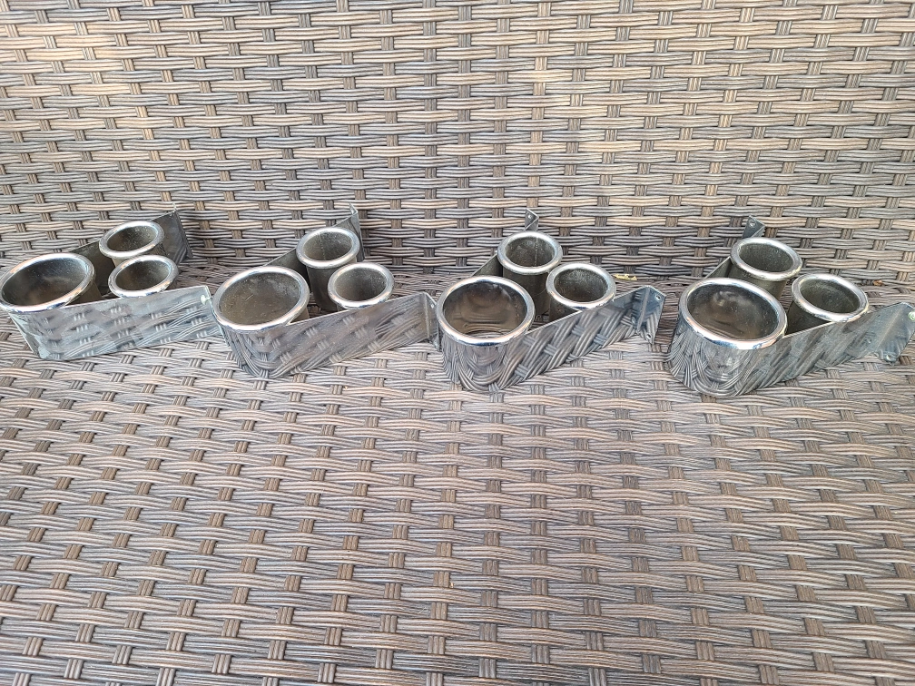 Four vintage chrome hair dryer holders. Wall mountable. Excellent for salon or home use. Perfect for vintage styling.