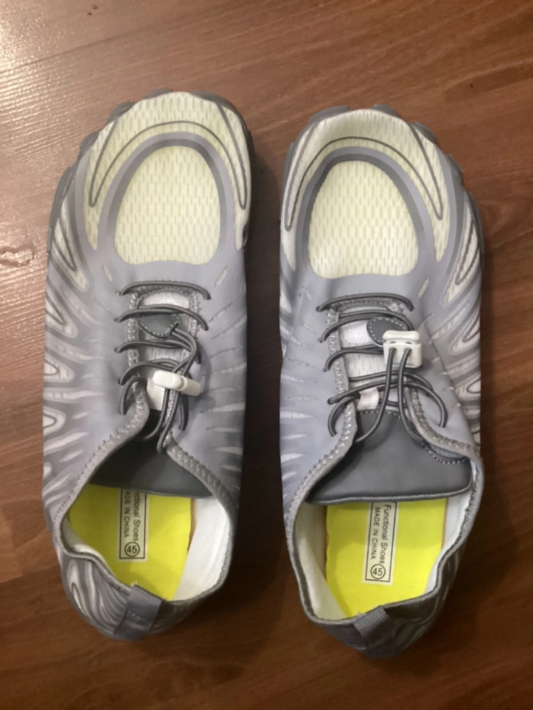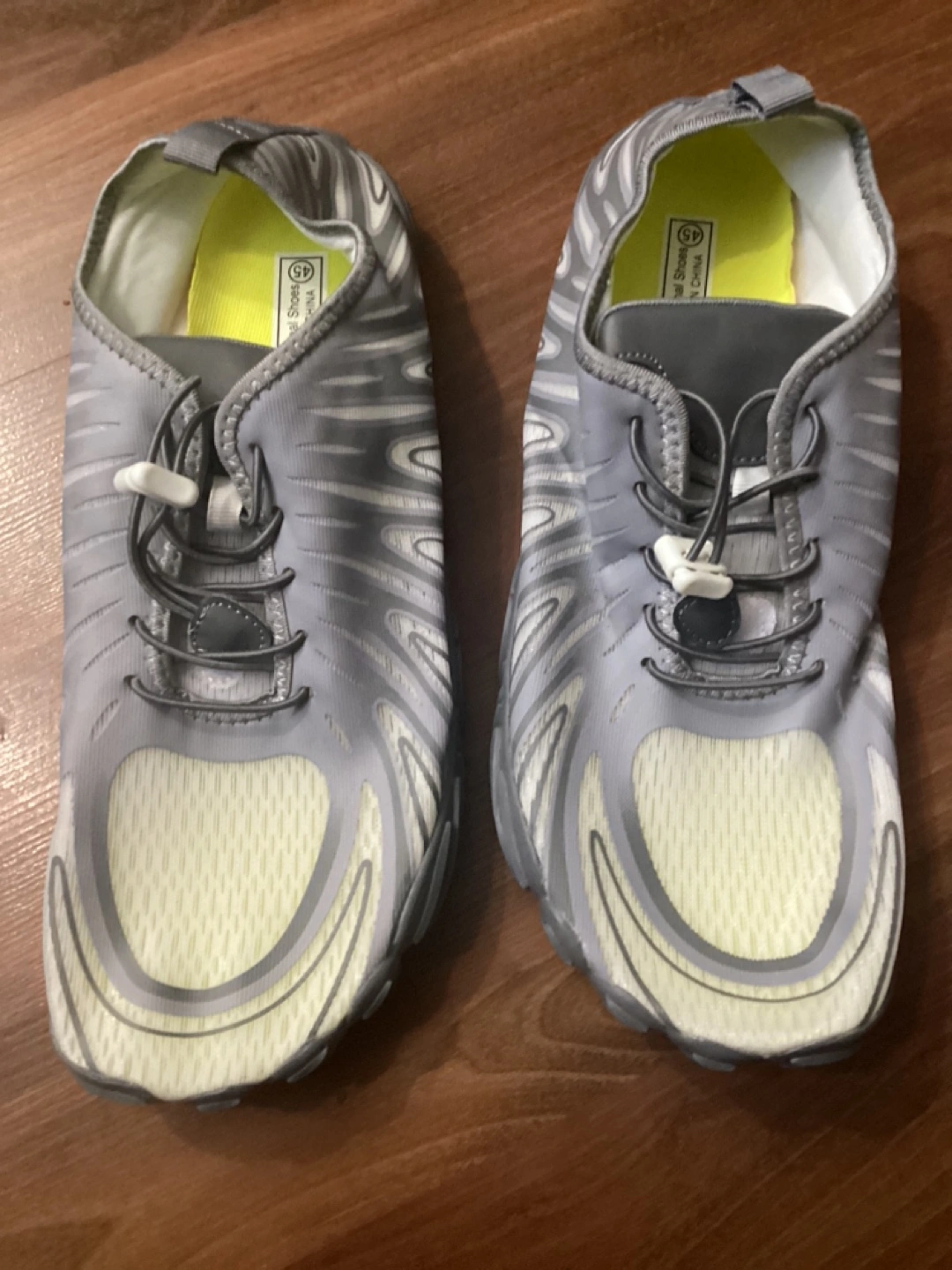 Pair of grey water shoes. Size 40. Lightweight and breathable. Good for water activities.
