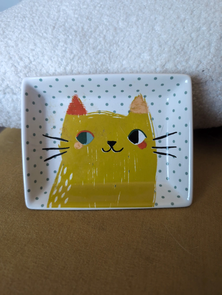 Buy & SellCute Cat DishCute Cat Dish$15Small ceramic trinket dish. Features a cute cartoon cat design. Polka dot background. Perfect for jewellery or other small items.WHERE TO MEETJensen LakesView MapSELLERElleAldergrove181 review0 chats·0 favorites·9 views