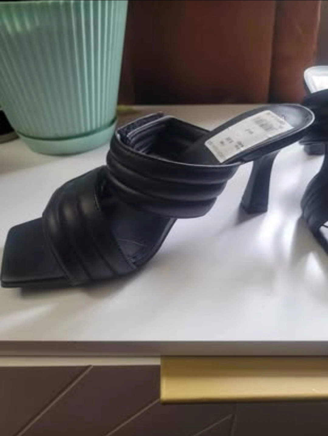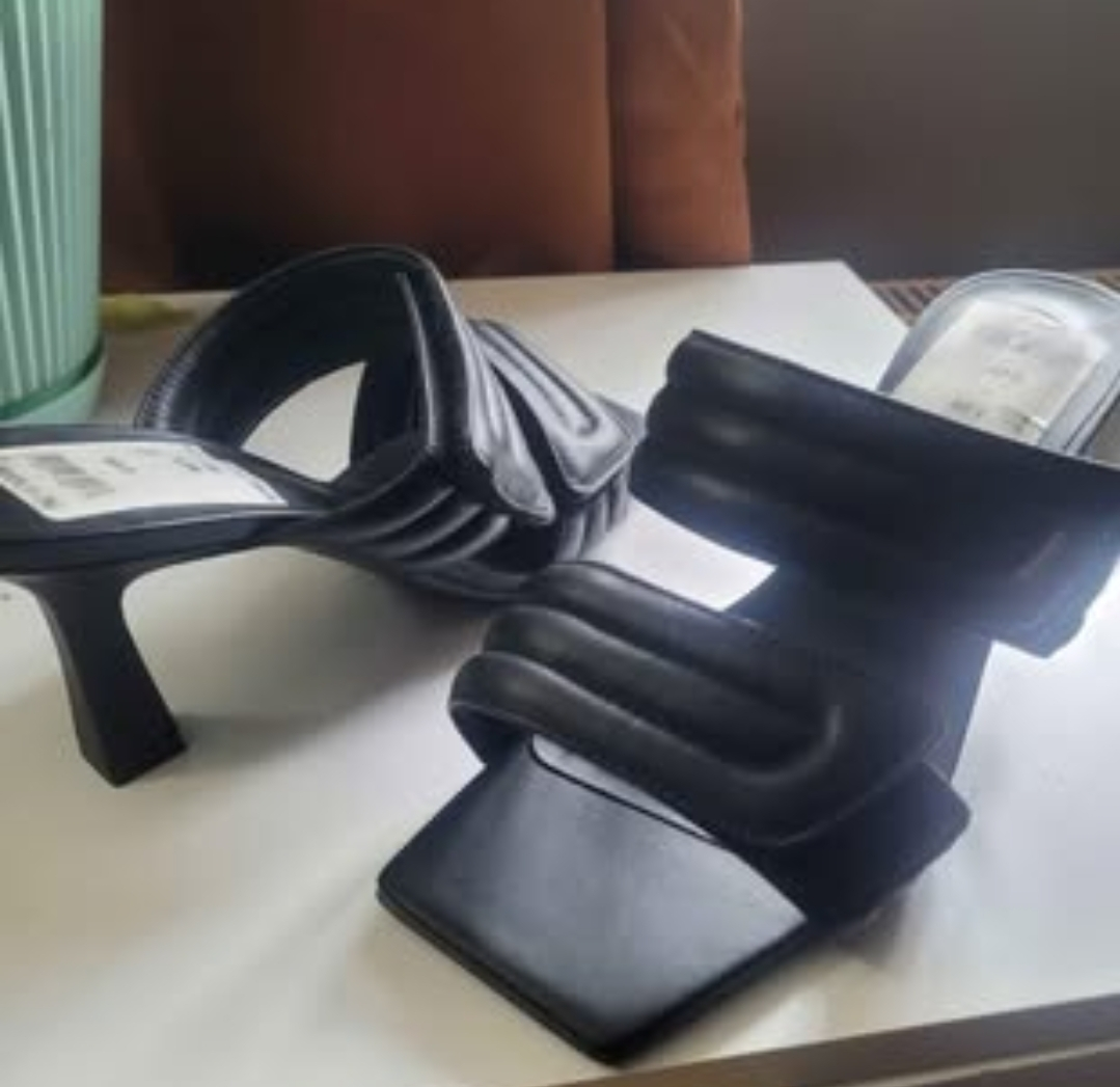 Brand New Black Padded Block Heel Mules