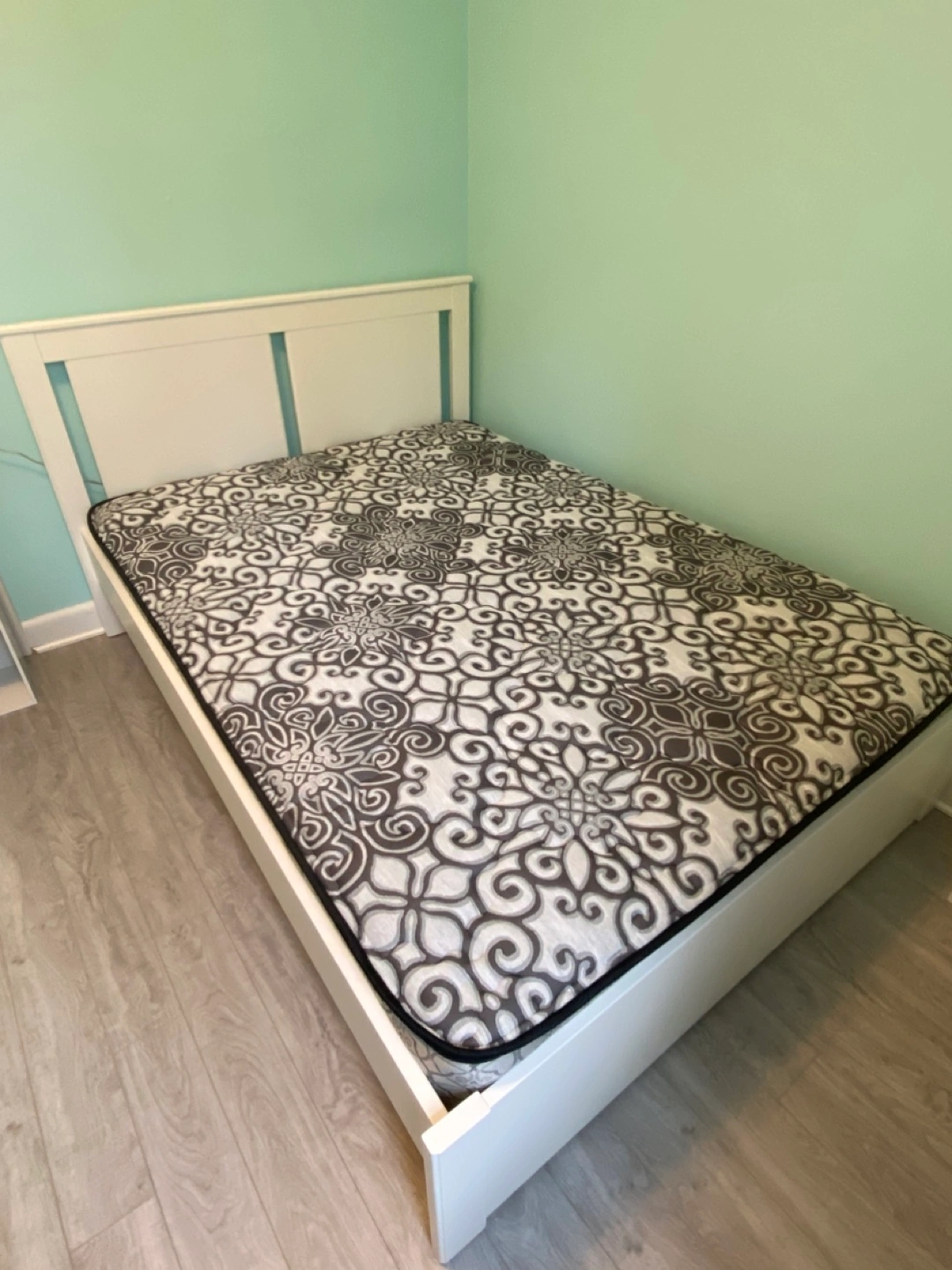 Frame is in perfect condition. Mattress is only a month old and has never been slept on. I had it in guest bedroom. Replacing with pull out sofa.