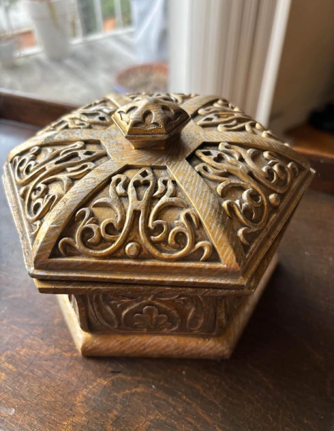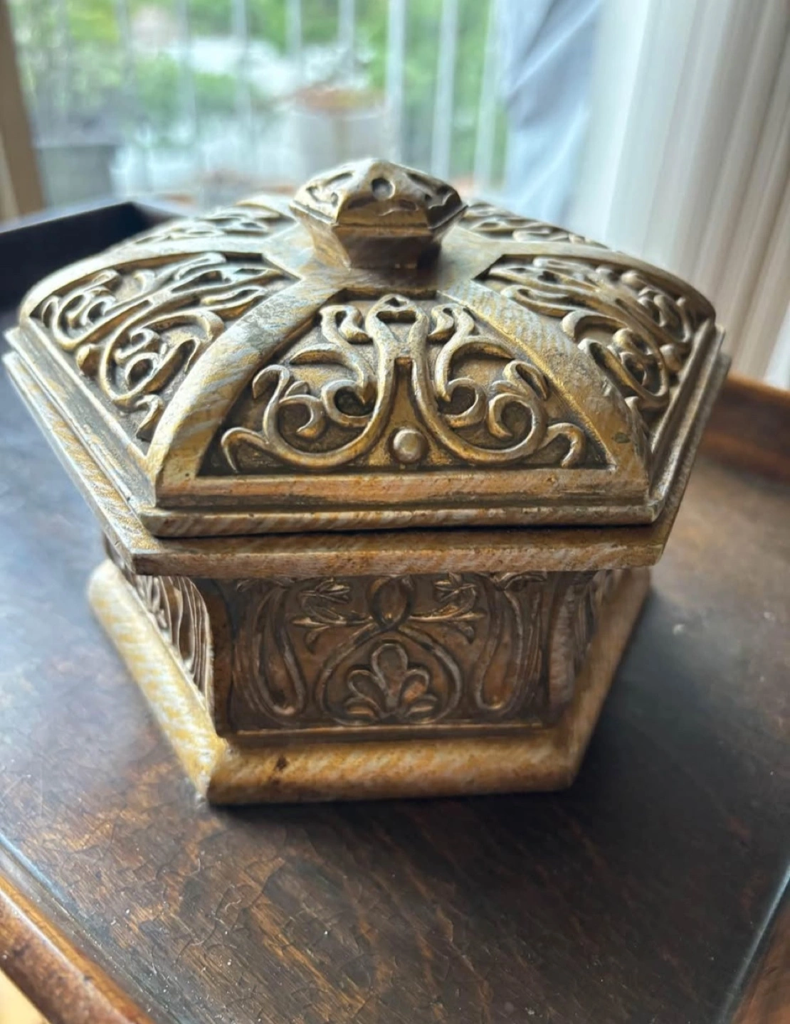 Antiqued Gold Decorative Jar with Lid and Velvet Interior