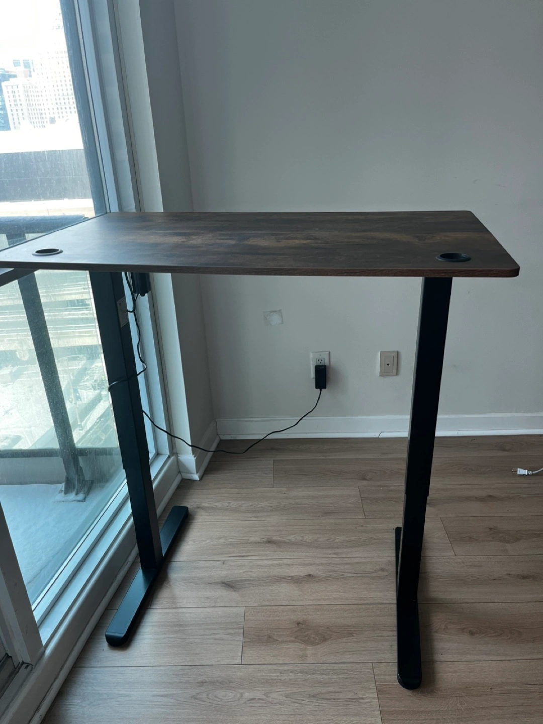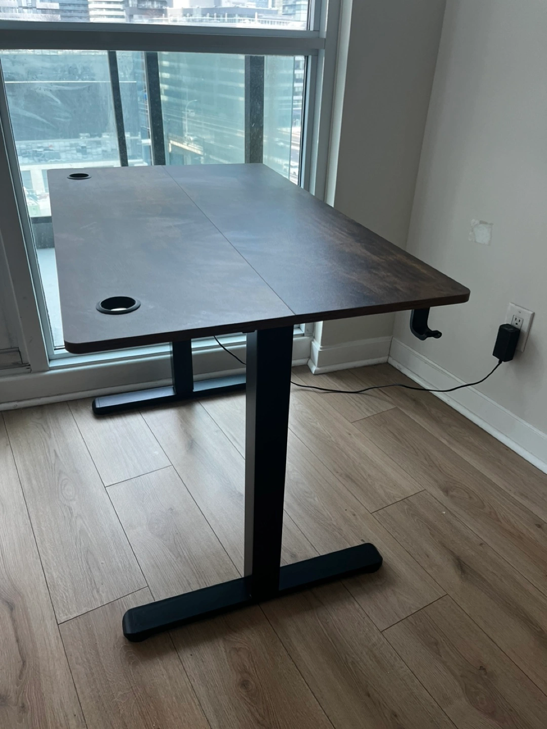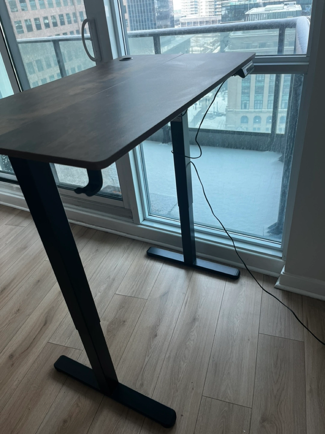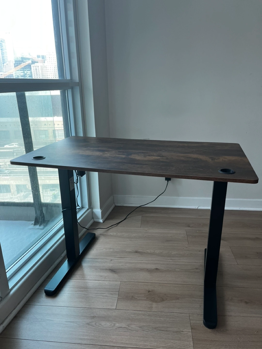 263***MOVING SALE*** Comes assembled The standing desk adjustable can adjust the height between 28.3 '-46.4' 'according to your needs. Our height adjustable desk has 3 memory buttons to match your different needs and occasions. The "s" key can remember the most commonly used height, allowing you to quickly adjust it with one click the next time you use it. The height adjustable electric standing desk is made of high-quality metal and supported by a T-shaped frame structure, which is sturdy and stable and can withstand a weight of 154 pounds. The wooden desktop that meets environmental standards is smooth, wear-resistant, safe and comfortable. The electric lifting desk has mature anti-collision technology, which can detect obstacles during movement to avoid collisions or conflicts. There is also a safety lock function, which prevents the desktop from slipping when there is a power failure. This elevating computer table motor has excellent quality, and the electric lifting system provides smoother height adjustment and low noise operation. During research and development, it has been repeatedly tested and used, and has an ultra long service life.