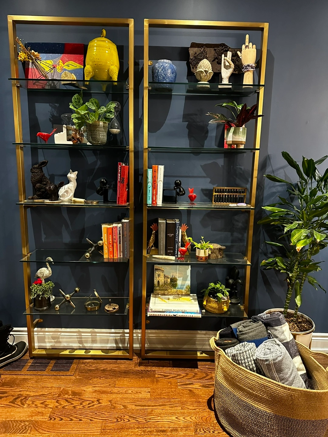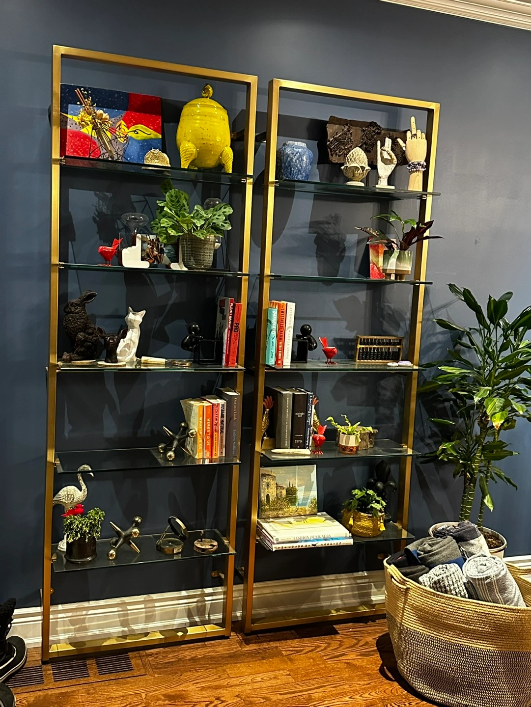 CB2 Gold Metal and Glass Bookshelves (Pair)