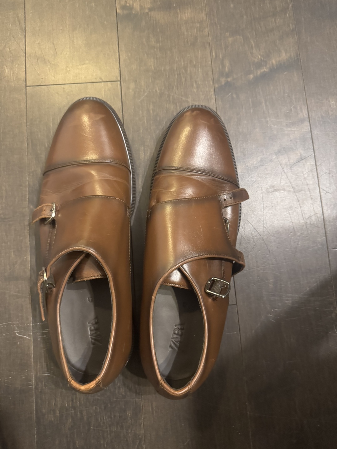 Brand new Zara Men's Brown Leather Monk Strap Shoes - Size 45