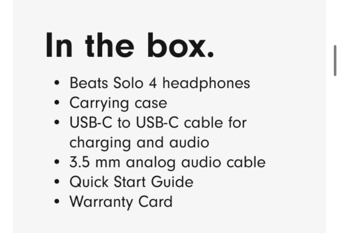 854BRAND NEW* pick up near finch station Description The original go-to wireless headphones for active music lovers are back — and better than ever. Designed to stay in place and get you moving with powerful sound, Beats Solo 4 on-ear Bluetooth® headphones have been re-engineered for incredible, high-fidelity acoustics, now featuring Personalized Spatial Audio with dynamic head tracking for truly immersive listening.1 1 Compatible hardware and software required. Works with compatible content in supported apps. Not all content available in Dolby Atmos. iPhone with TrueDepth camera required to create a personal profile for Spatial Audio, which will sync across Apple devices running the latest operating system software, including iOS, iPadOS, macOS, and tvOS. Features & details Custom acoustic architecture and updated drivers for powerful Beats sound. Personalized Spatial Audio with dynamic head tracking. Ultralight ergonomic design for all-day comfort. Flex-grip headband and ergonomically angled, adjustable ear cups for a stable fit. UltraPlush ear cushions are designed for comfort and durability. Up to 50 hours of battery life. Fast Fuel means a quick 10-minute charge gives up to 5 hours of playback. High-resolution lossless audio via USB-C or 3.5 mm audio cable. Dual compatibility including one-touch pairing for both iOS and Android. High-quality call performance and voice assistant interaction via built-in microphone. Industry-leading Class 1 Bluetooth for extended range and fewer dropouts
