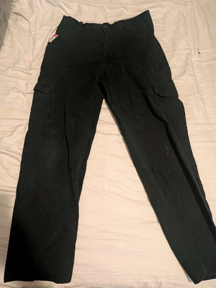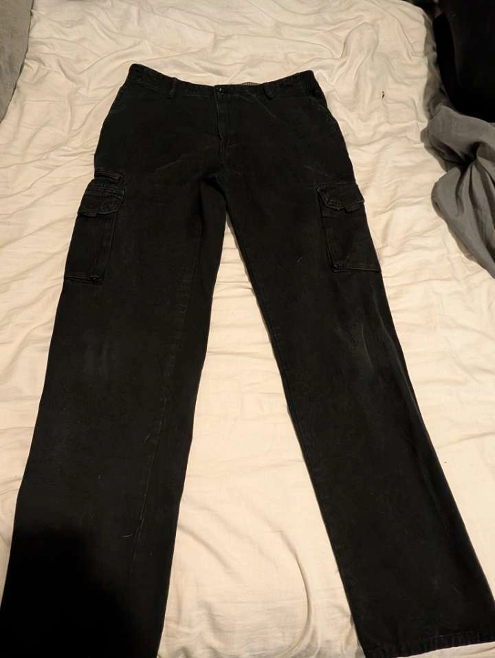 Black cargo pants. Multiple pockets. Good condition. Men's sizing.