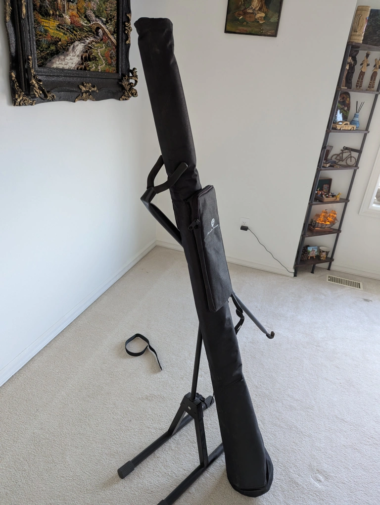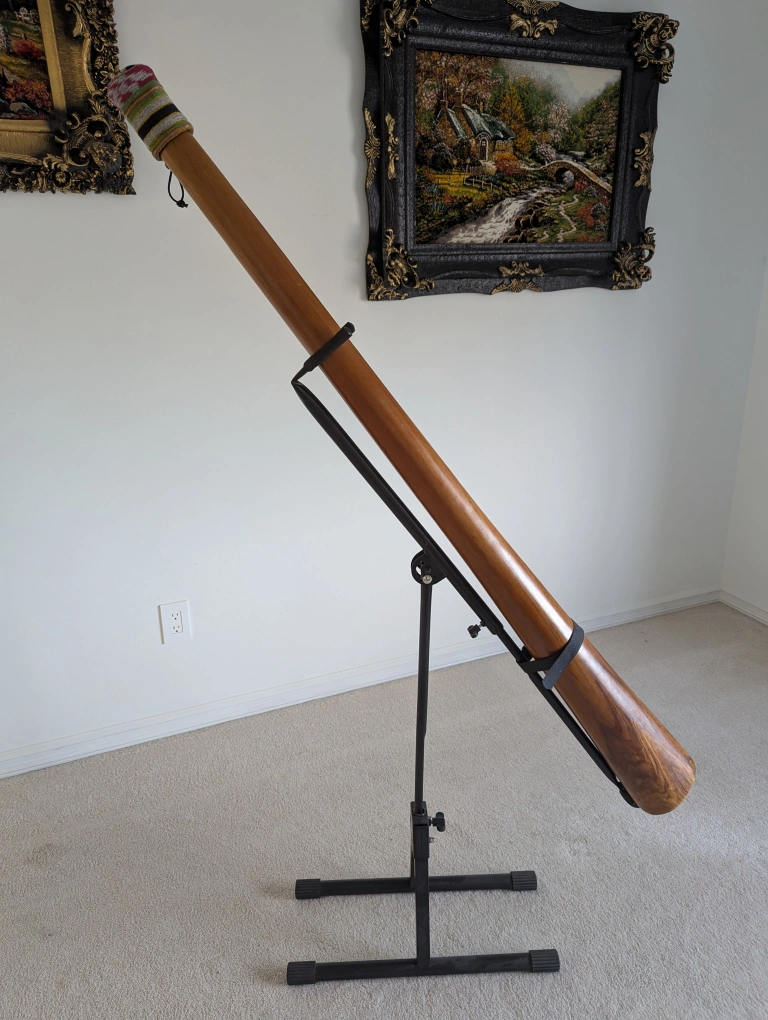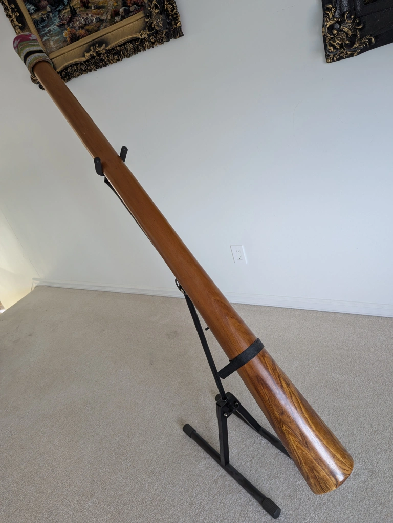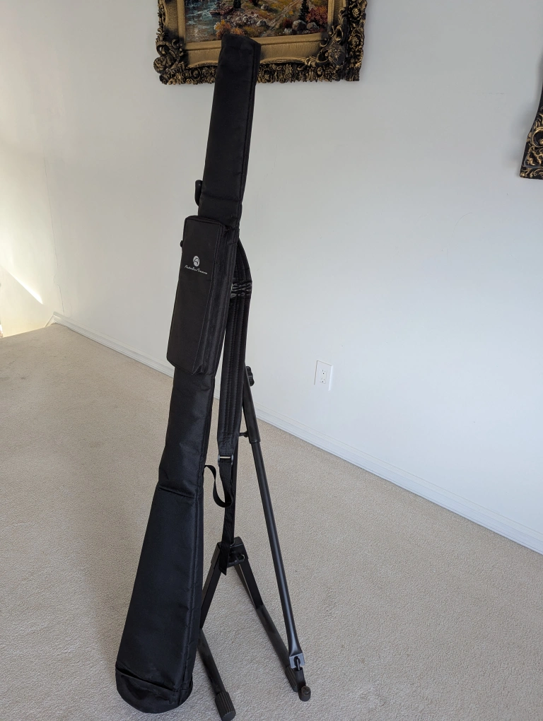 The didgeridoo stand and travel bag are included.
