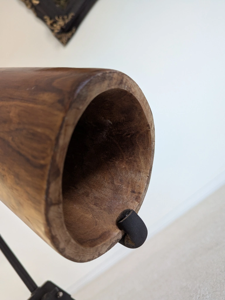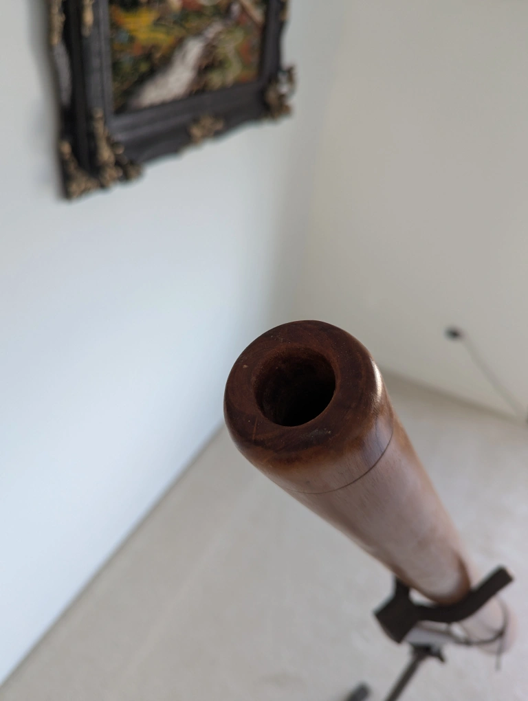 Beautiful mahogany didgeridoo made of high quality wood, beautifully shaped and with a branded logo. This didgeridoo has a ideal funnel shape, rich overtones and is very easy to play. The didgeridoo has a nice wood mouthpiece with the ideal shape of Ø 32mm.