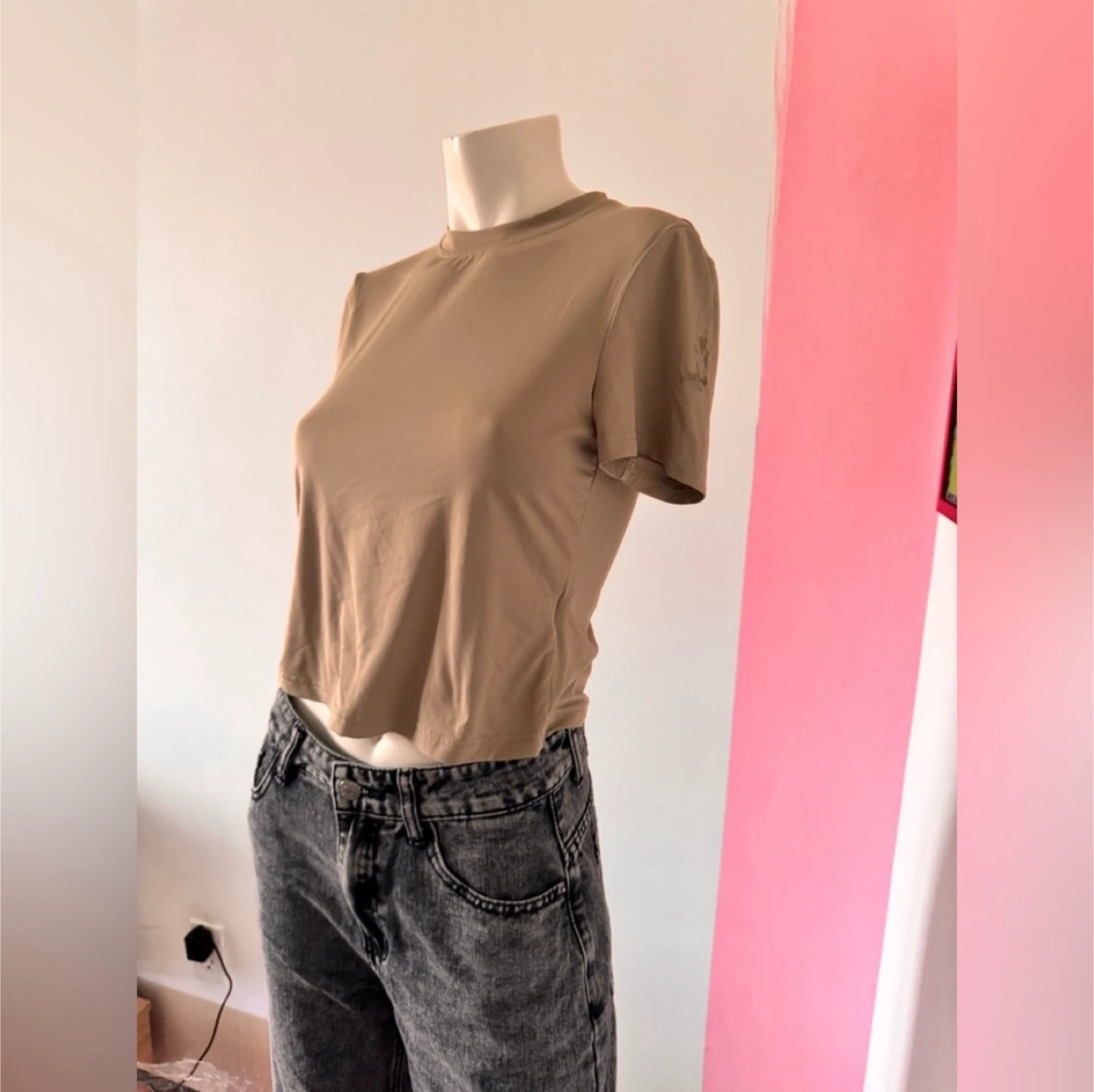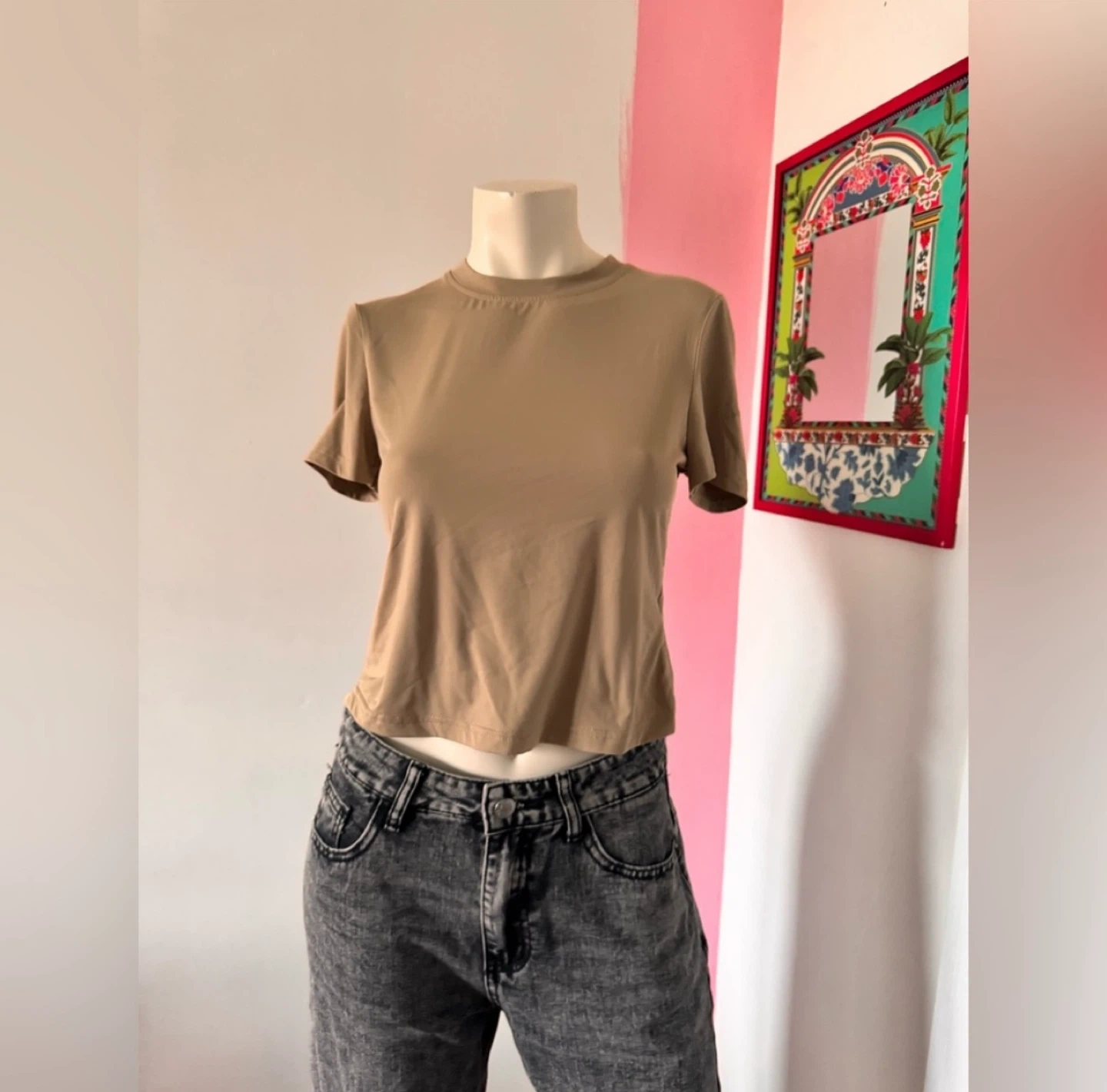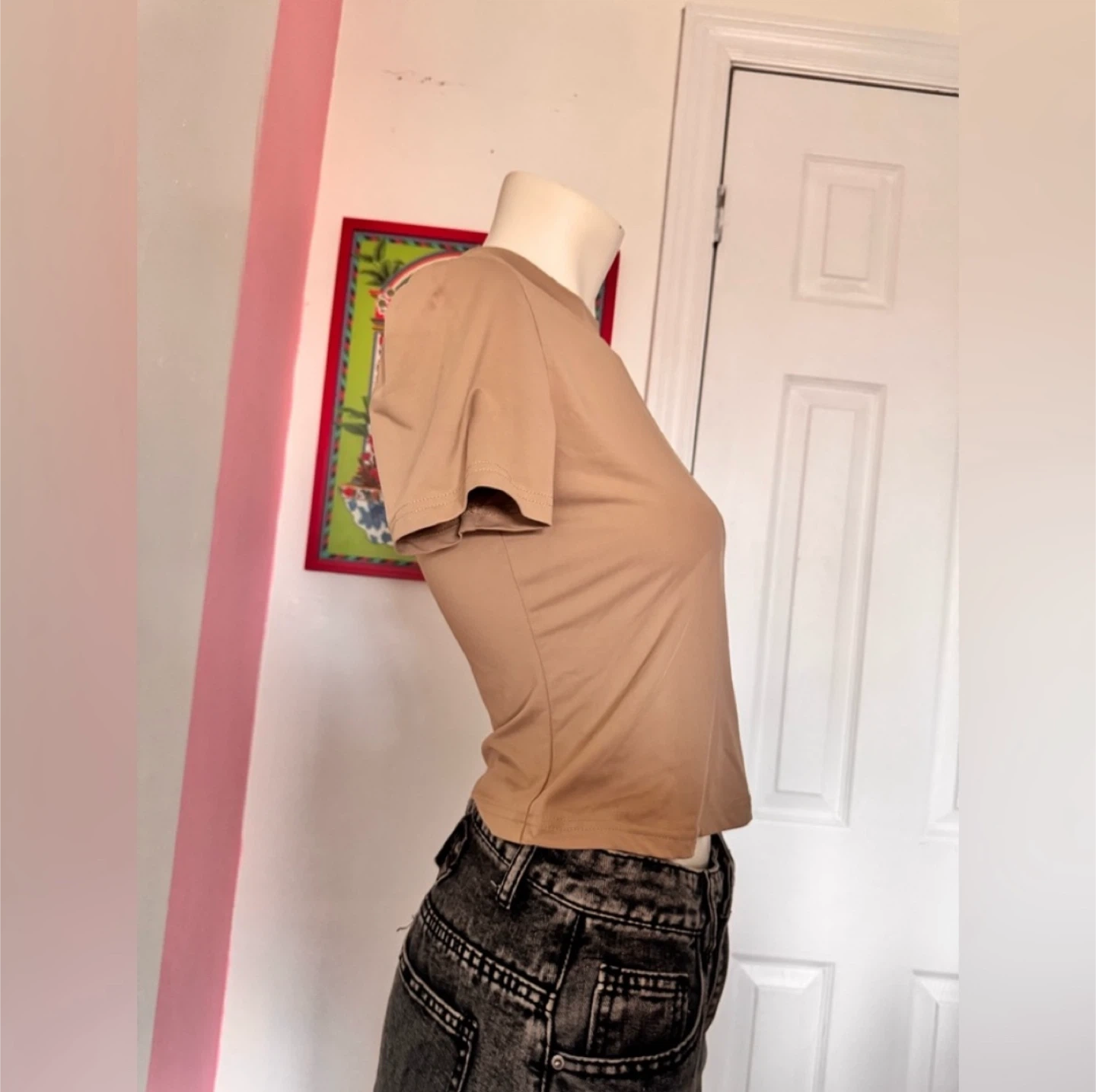 Tan Fitted Stretchy T-Shirt with Short Sleeves