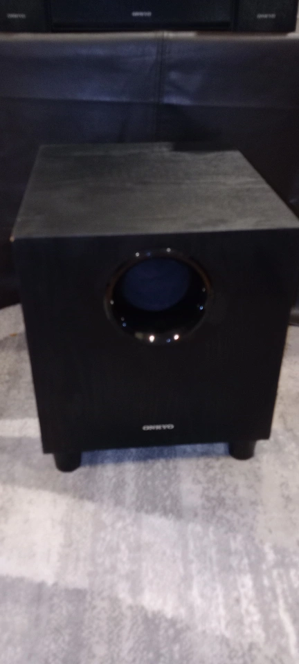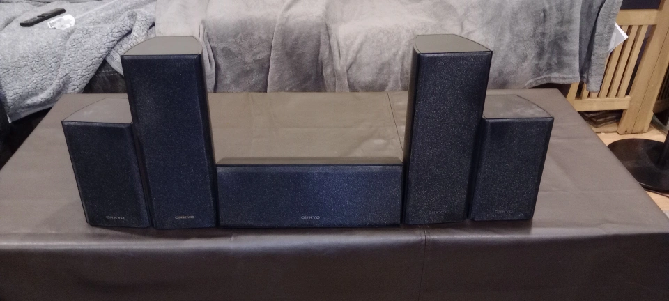 5.1 channel home theatre system. Includes receiver, five speakers, and subwoofer. Great sound quality.