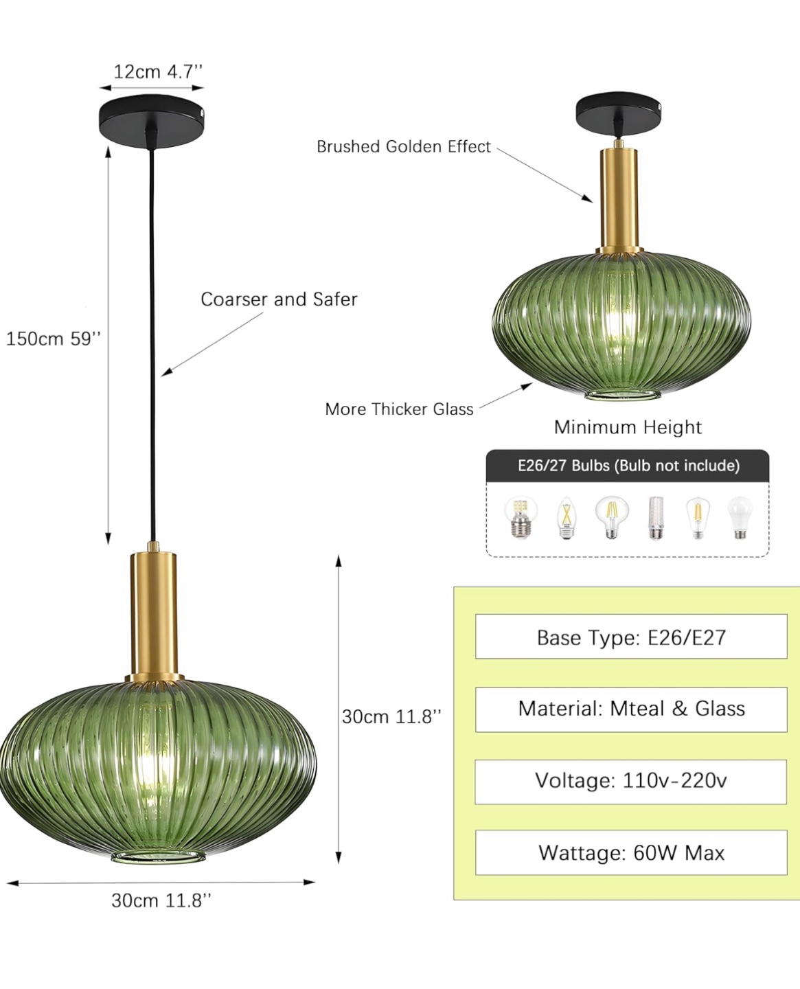 Customizable Color Options: Our pendant light is available in four beautiful color options: green, amber, grey, and clear. This wide selection lets you choose the perfect color to match your home decor, whether you’re creating a cozy atmosphere or making a bold statement. Personalize your lighting to fit your unique style.