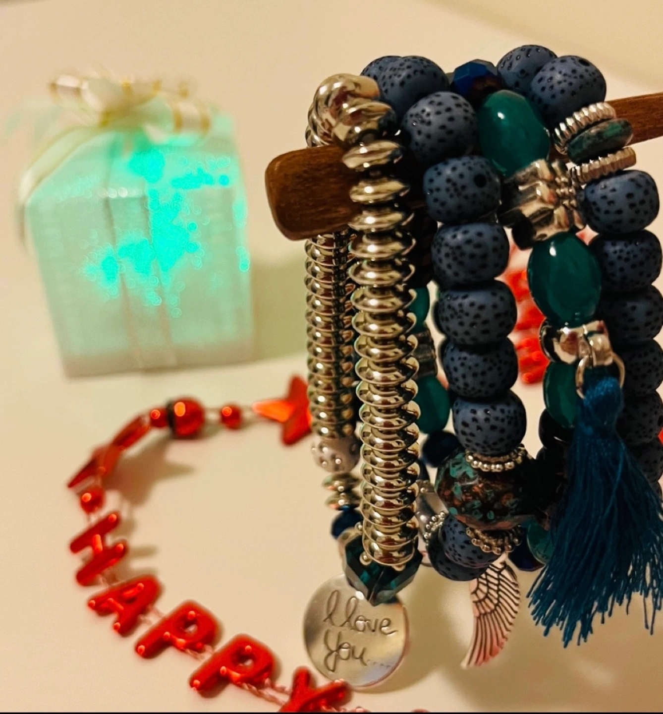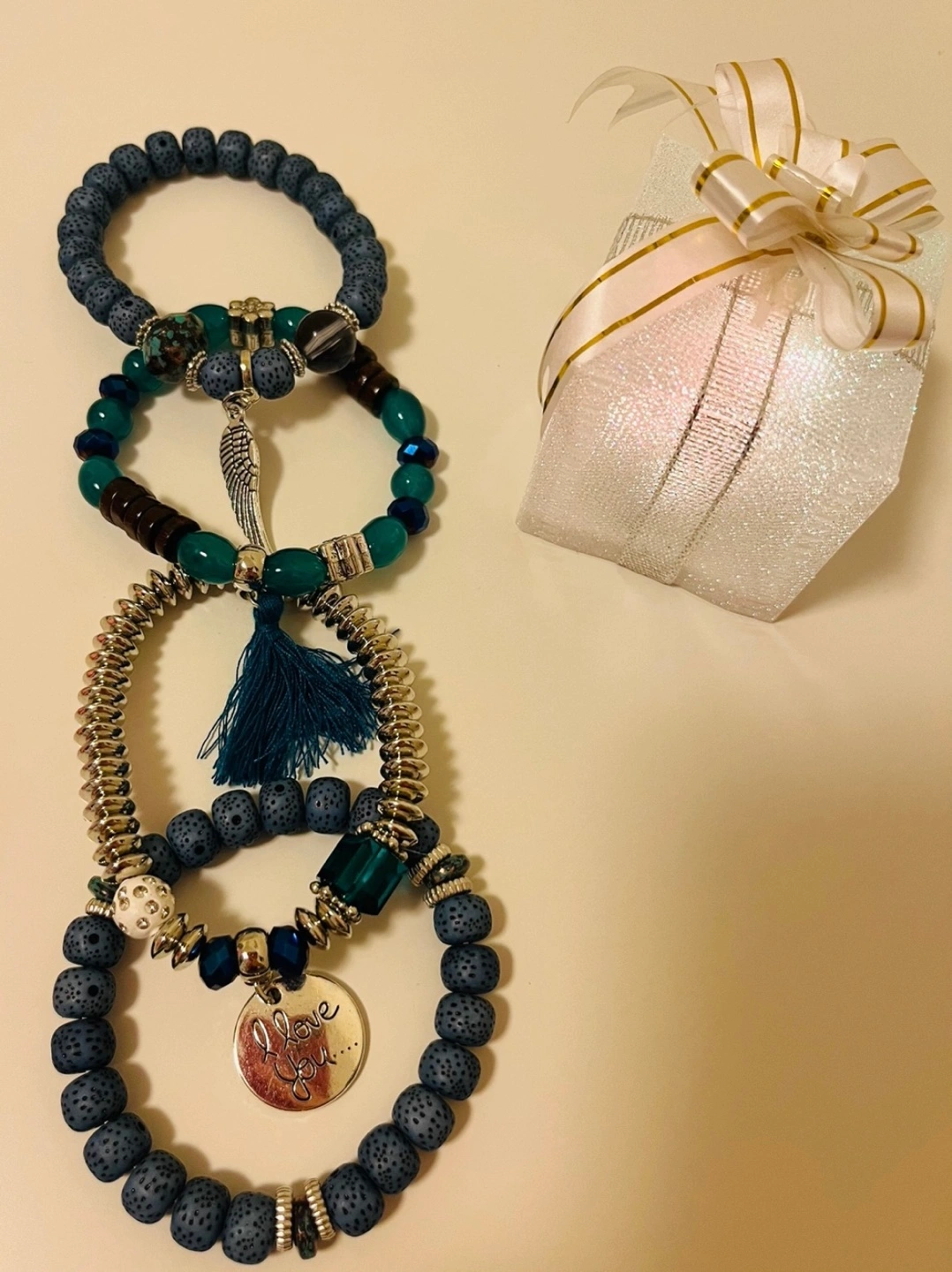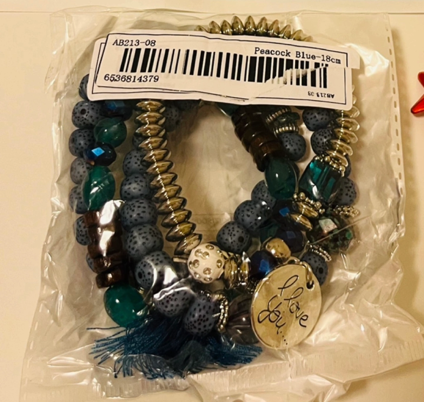 804pcs/set Stylish Blue Beaded Bracelet. The bracelet and gift bag are new. I give it with a gift bag as seen in the picture.