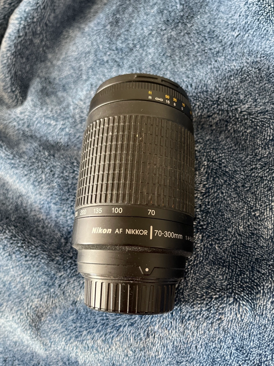 Nikon telephoto zoom lens. 70-300mm focal length. Aperture of f/4-5.6. Good condition.