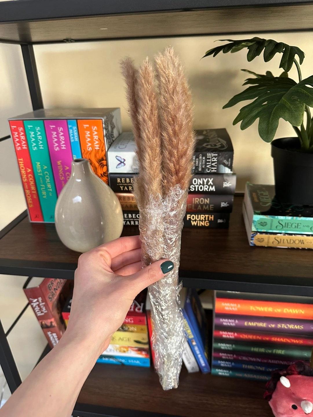 Small Beige Ceramic Vase & Pampas