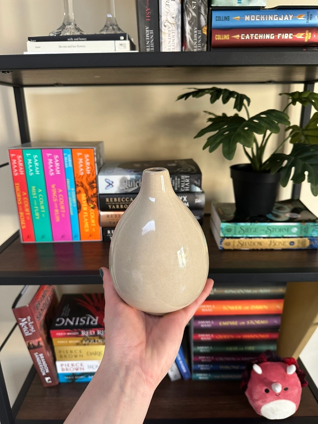 Adorable small beige ceramic vase. Perfect for small bouquets or home decor. Simple, elegant design.