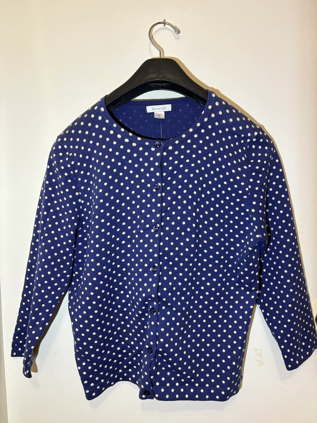 *New* Garnet Hill Blue Polka Dot Cardigan (3/4 sleeve) Medium