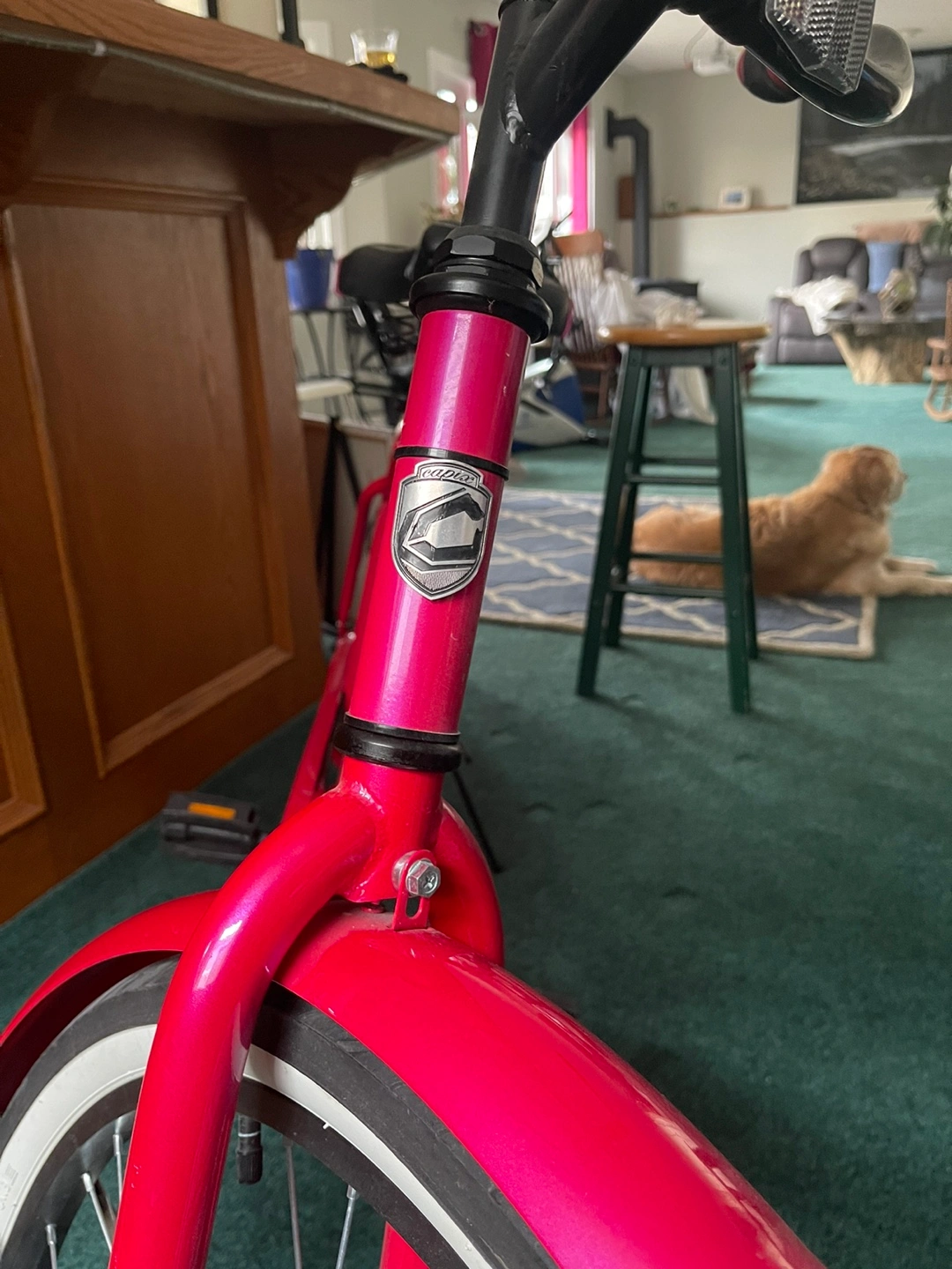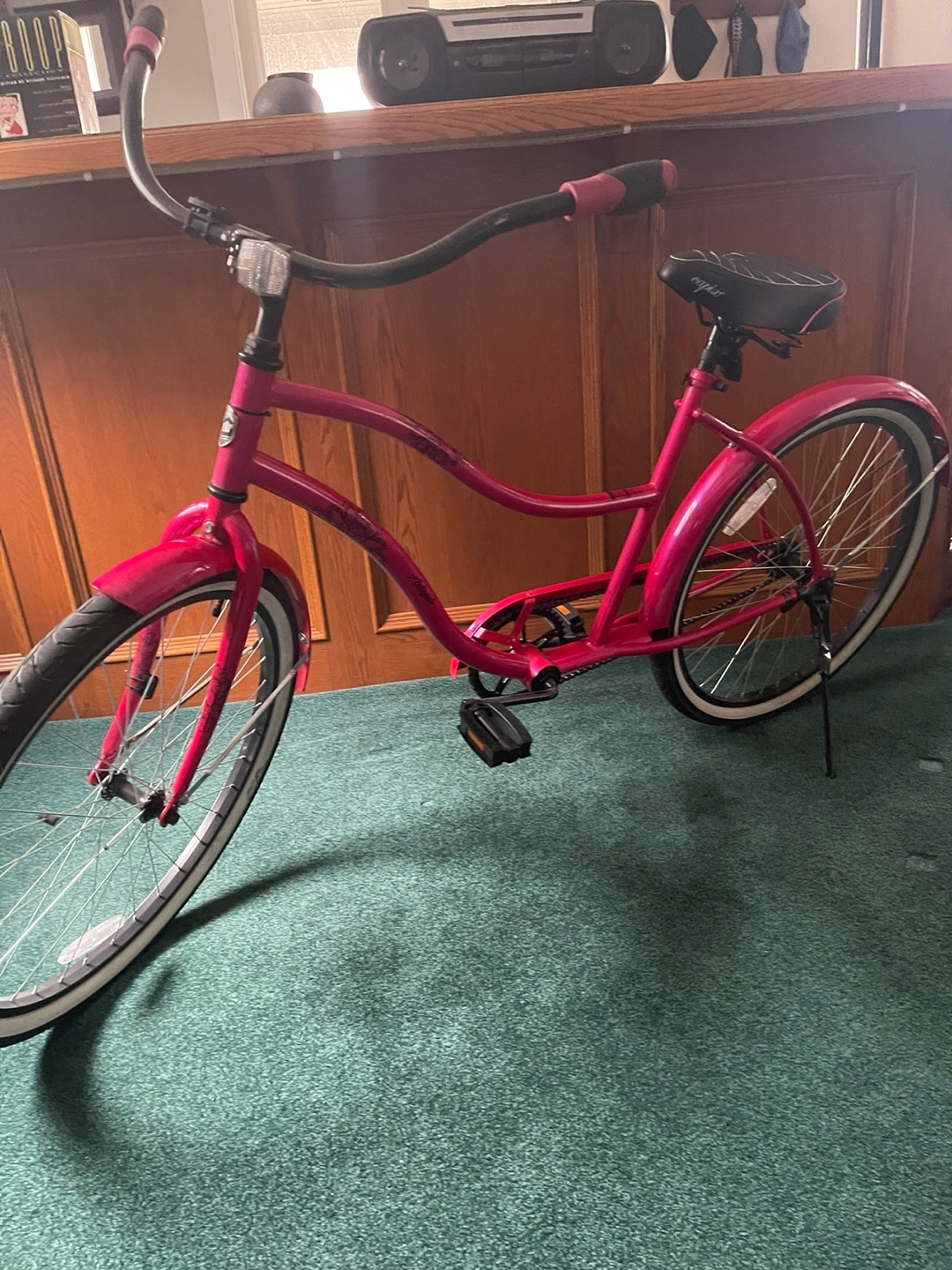 Pink women's cruiser bike. Fantastic condition. Features whitewall 26 “ tires and a comfortable cruiser design. Ready for summer rides!