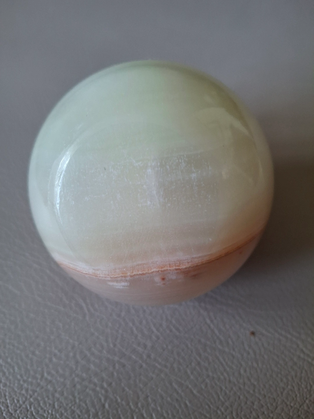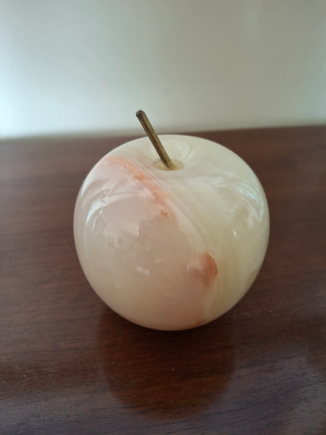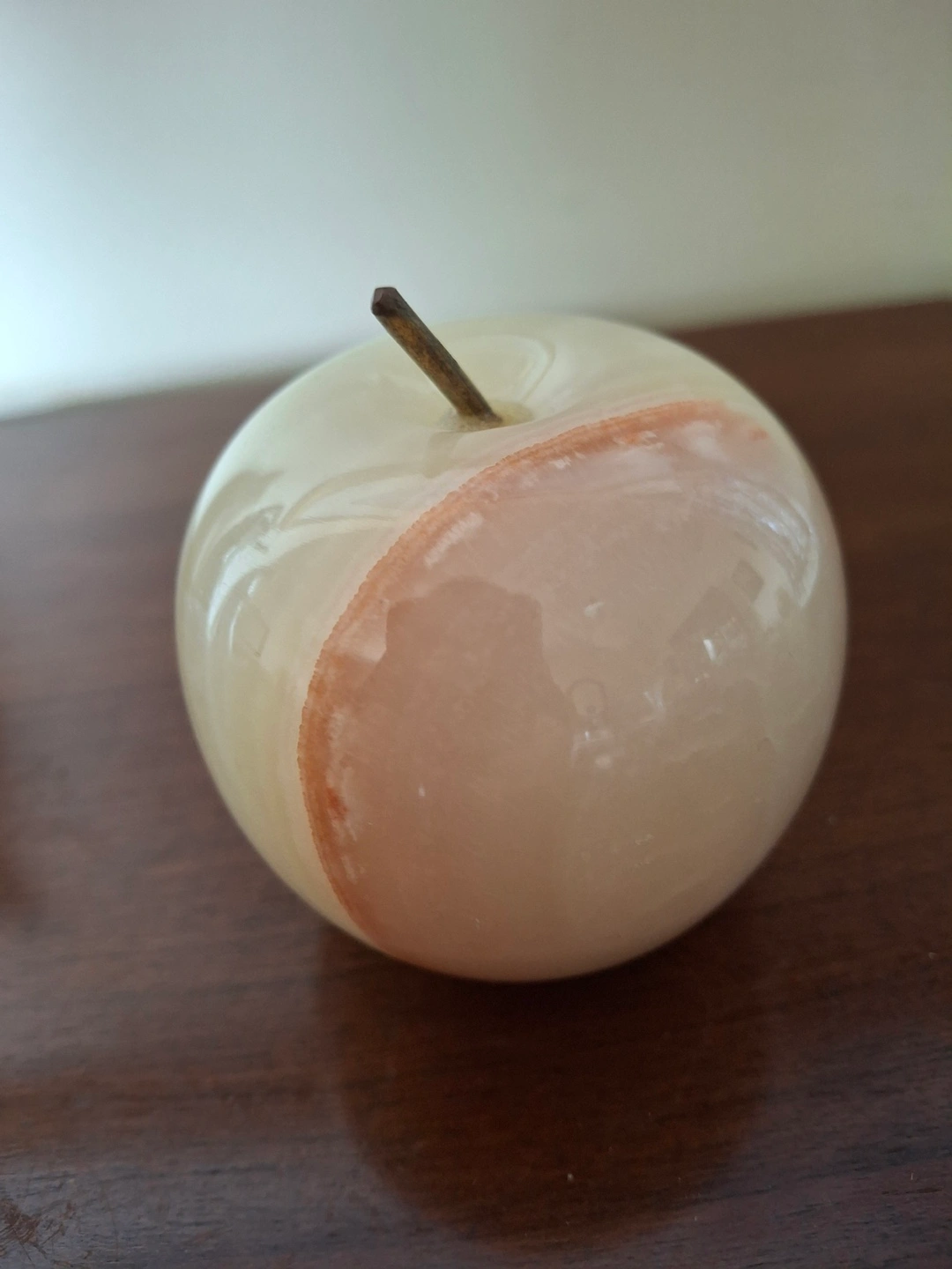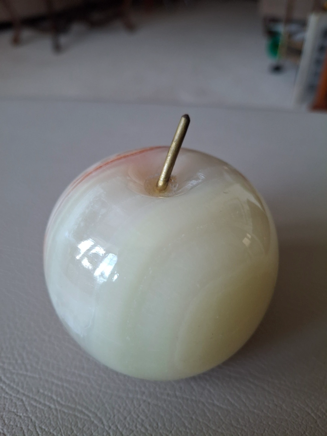 1000+Onyx apple shaped paperweight. Nice gift. Approx 2.5” across by 2.5” high. Light green with rust tones. Available for pickup in Markland Wood.