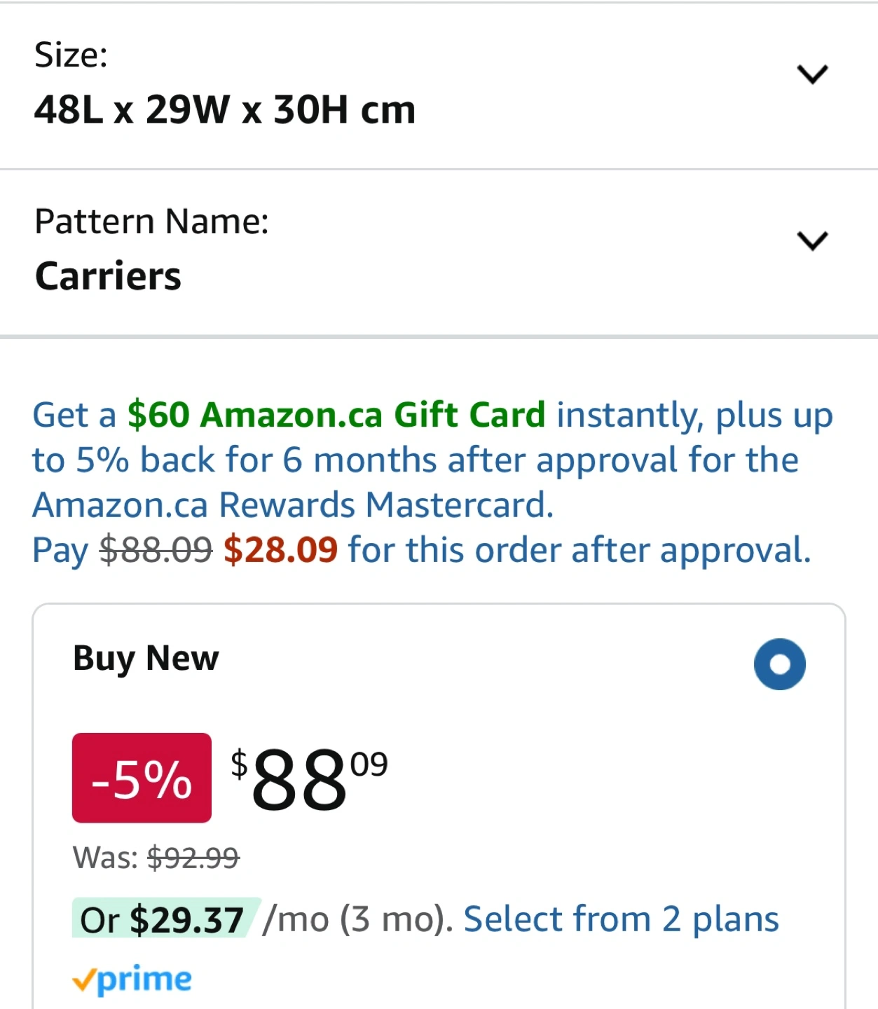 Measures 48L x 29W x 30H cm.