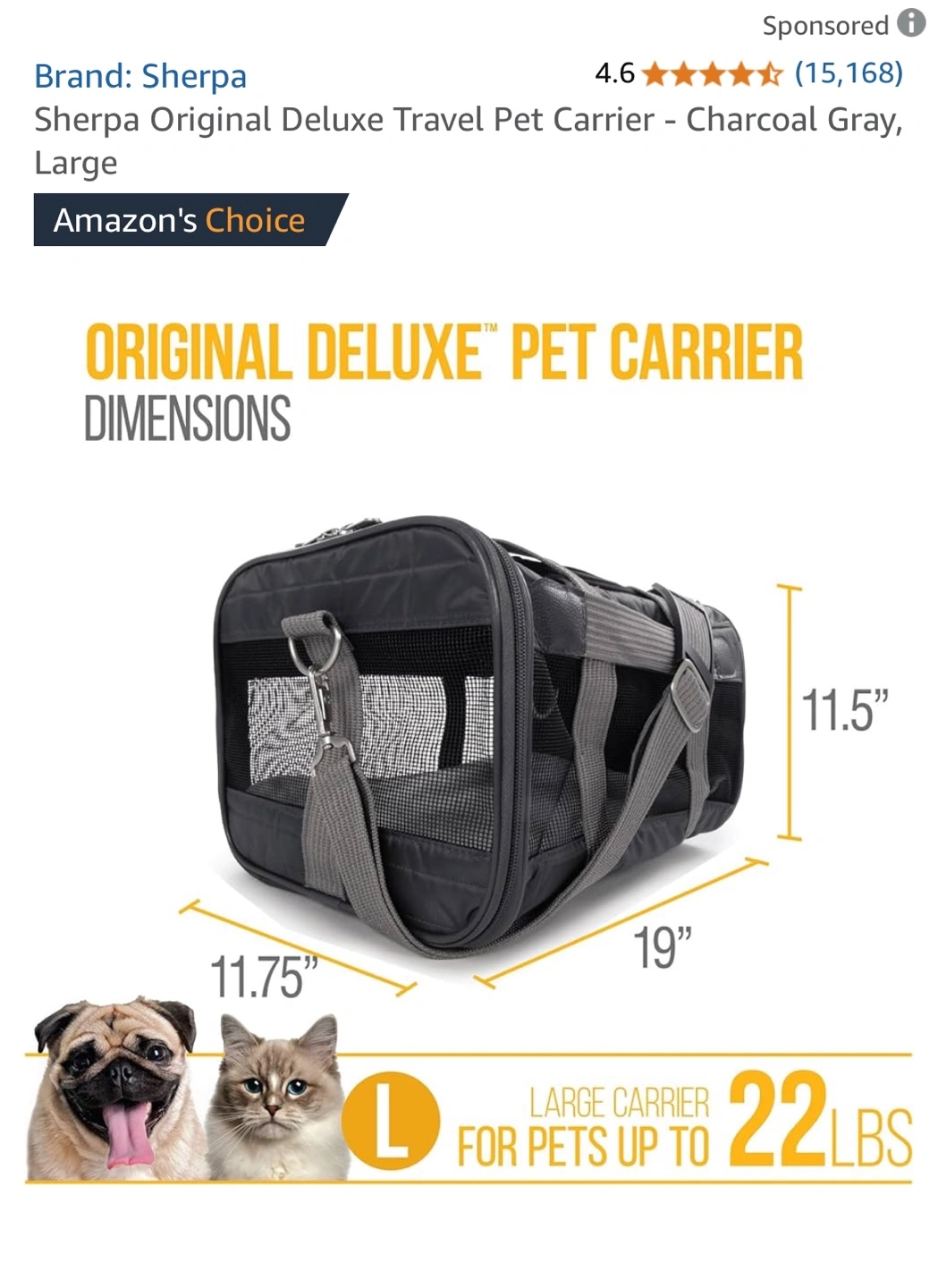 Suitable for pets up to 22 lbs.