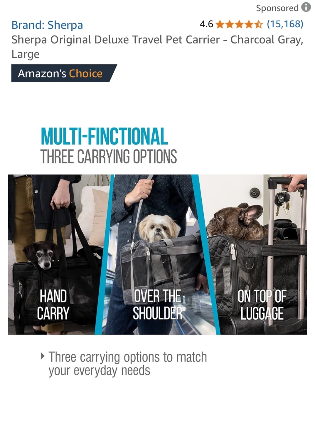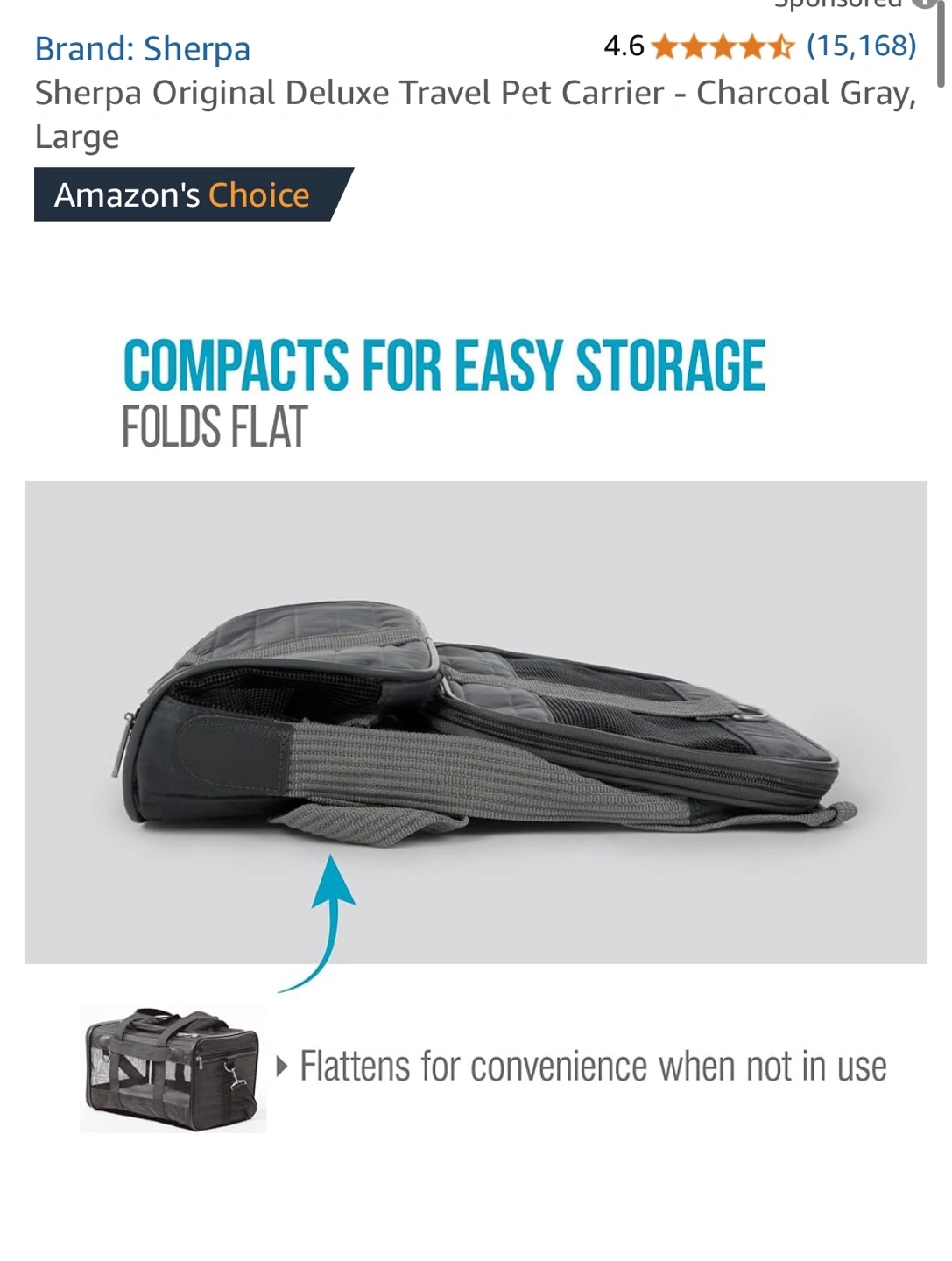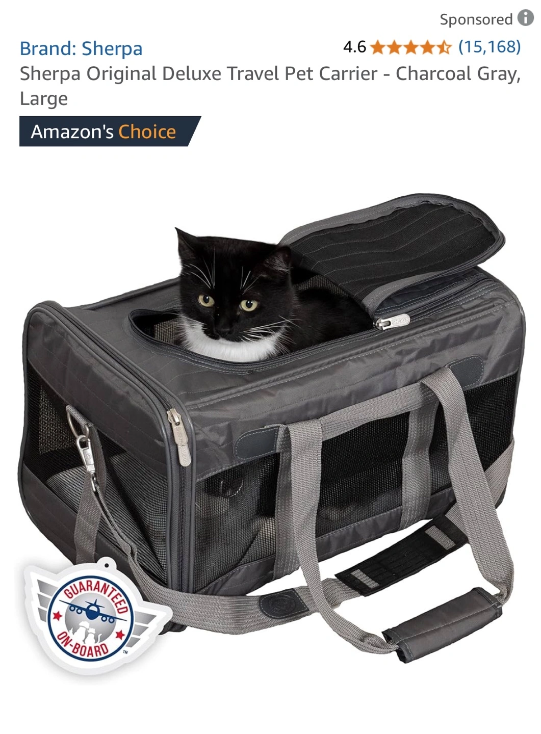 Sherpa Original Deluxe Pet Carrier - Large Charcoal Gray