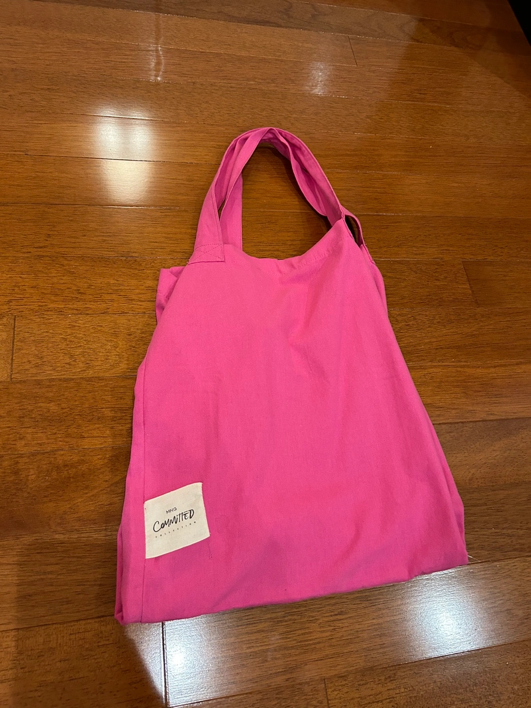 Large pink canvas tote bag. Features two shoulder straps and a zippered pocket.