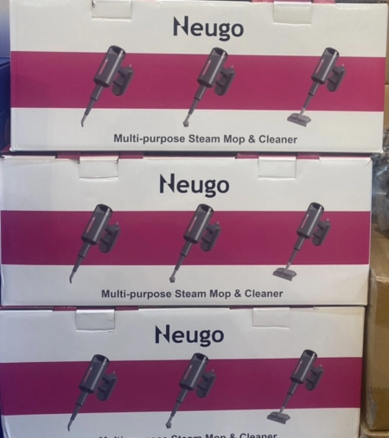 9Three brand new Neugo multi-purpose steam mops and cleaners. Still in original packaging. Great for cleaning floors and other surfaces.