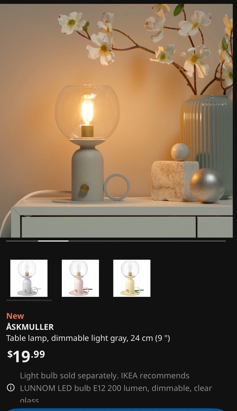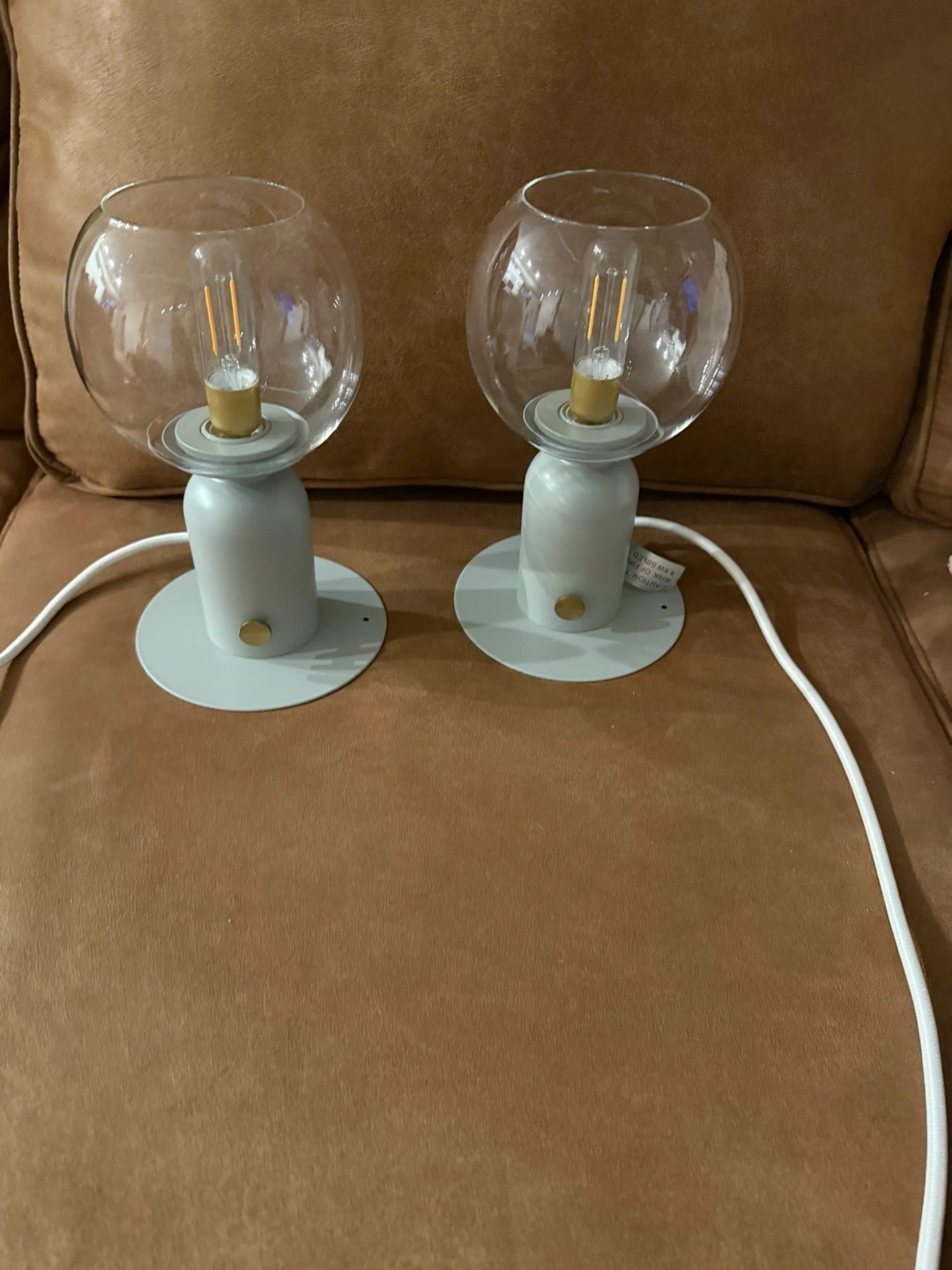 Two dimmable table lamps. Light gray/Green metal base and clear glass shade.