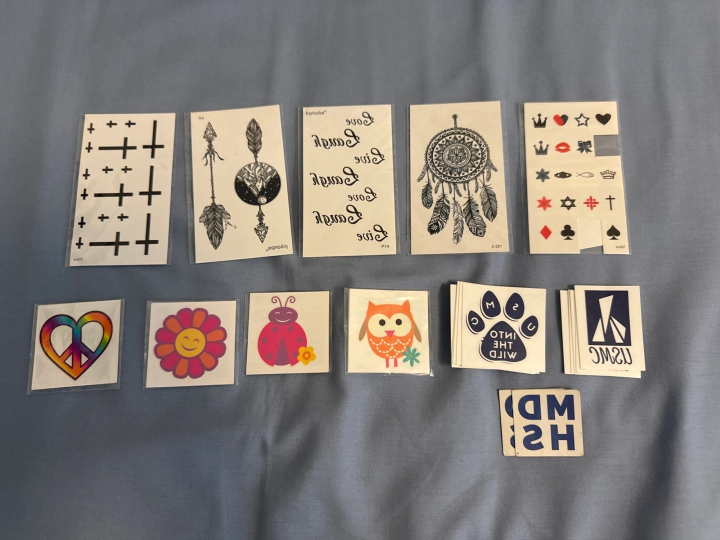 549Big sheets only contain 1 sheet but the smaller ones have multiple per tattoo. Take all for $3 Take a look at my other items if interested. Can bundle with my other stuff for cheaper! Can meetup in Markham. Cash only please