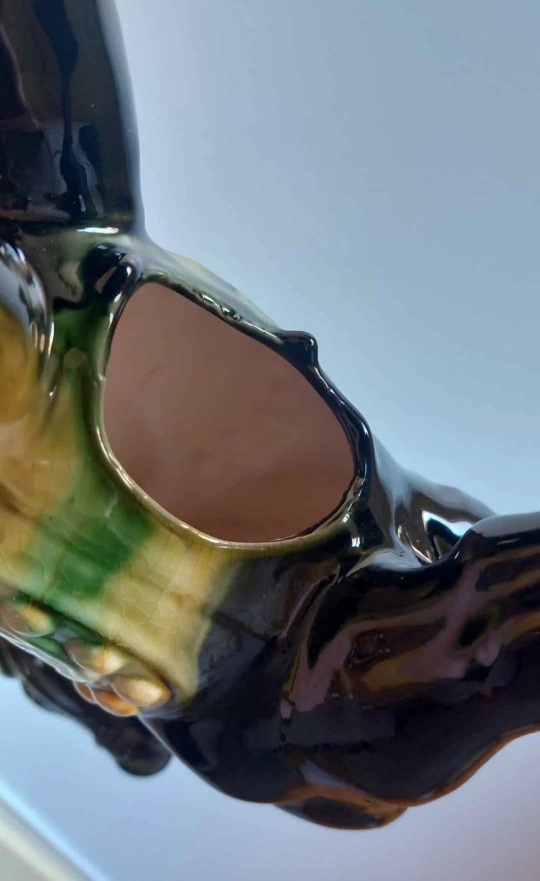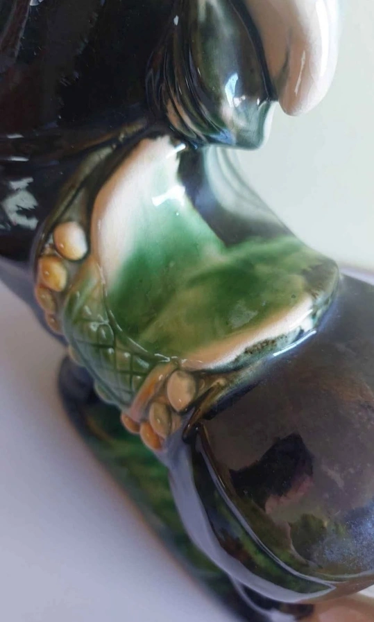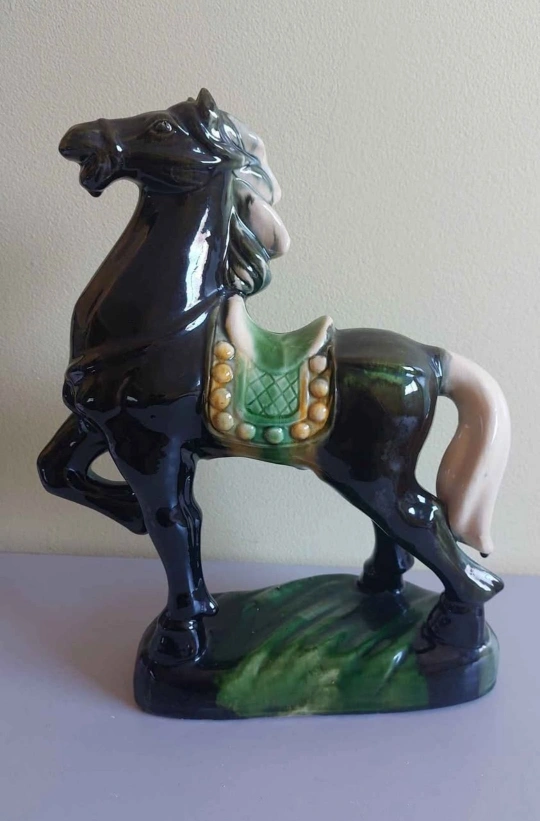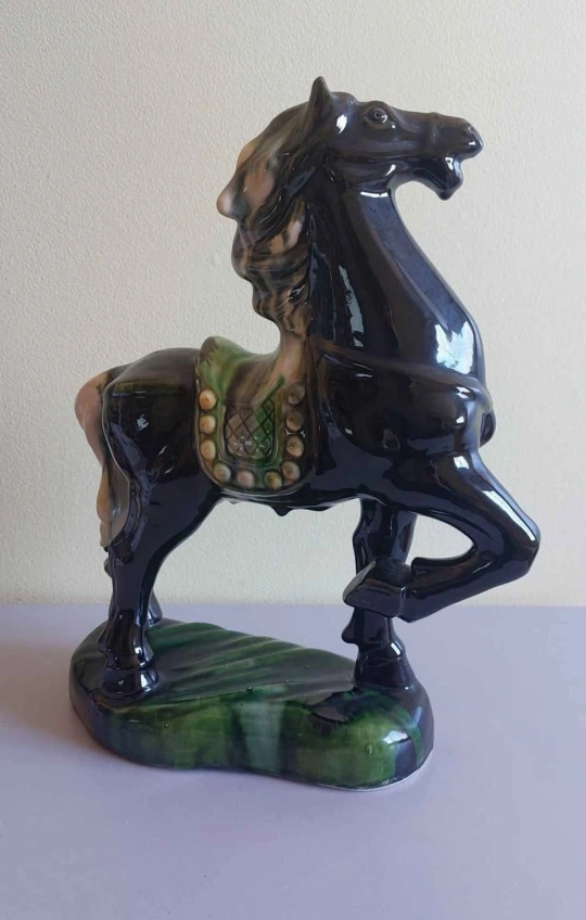 Small chip on ear as seen in photos. Signs of crazing. Large ceramic glazed horse. No stamp or signature. 14"×10"x4" public meet up at the Mississauga Valley Community Centre.