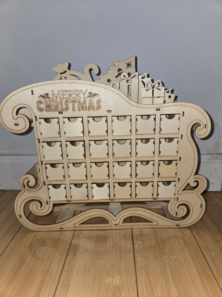 Wooden Christmas Advent Calendar - Tree & Sleigh Designs