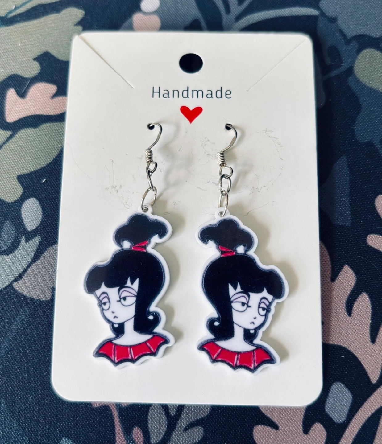 Cute pair of handmade dangle earrings.Silver hooks. Lightweight and fun