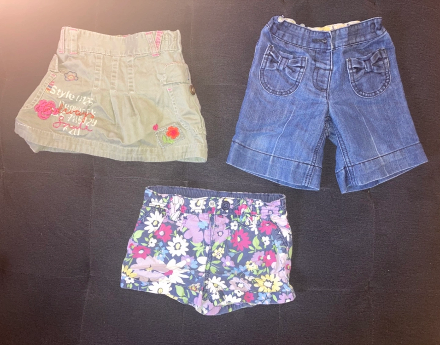 * Next UK denim shorts with bow details, * * Gap floral print shorts.