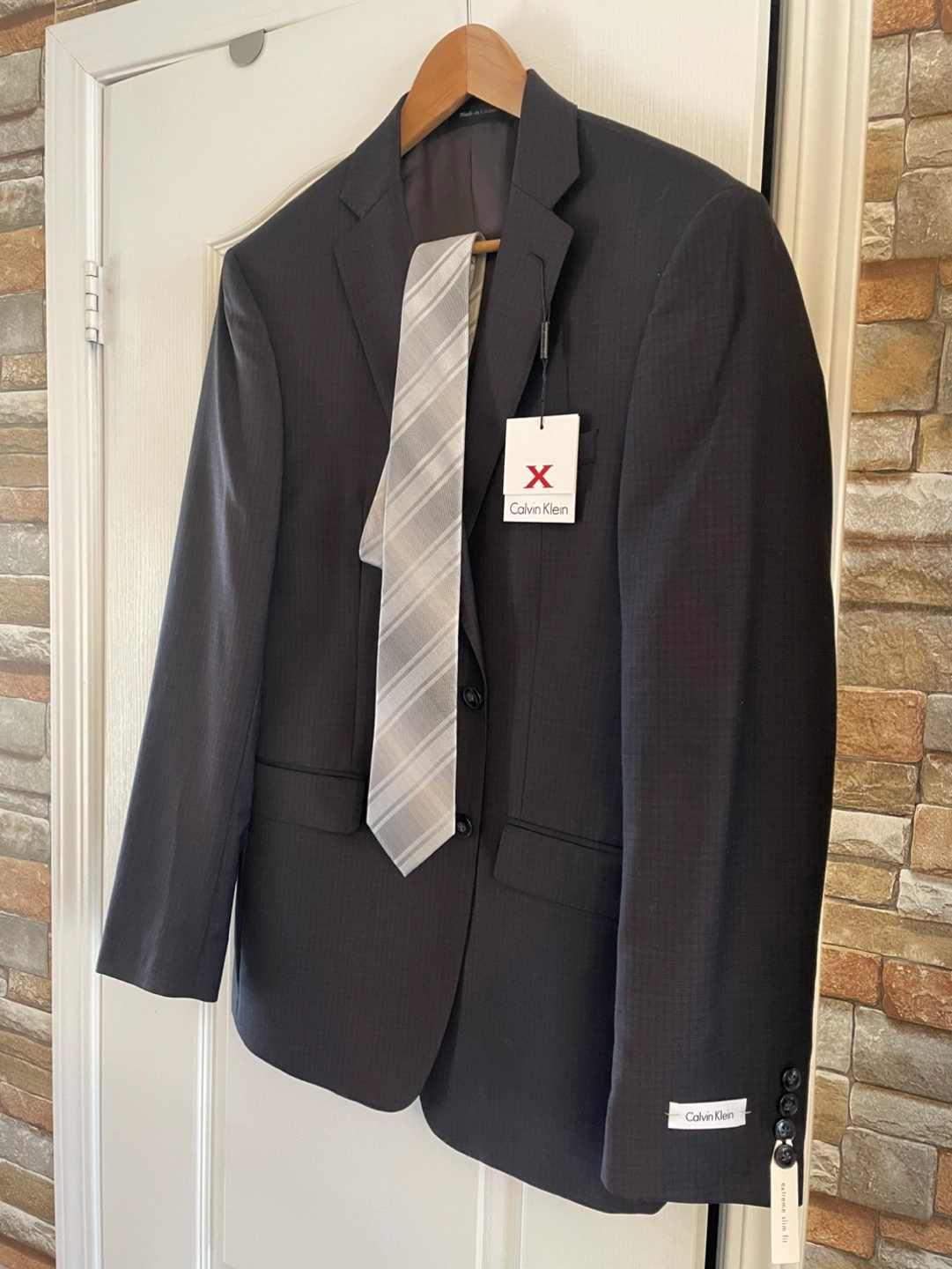 Brand New Calvin Klein Men’s Suit (40R) from my personal collection. Slim and Modern style, good for ceremony and business occasions.