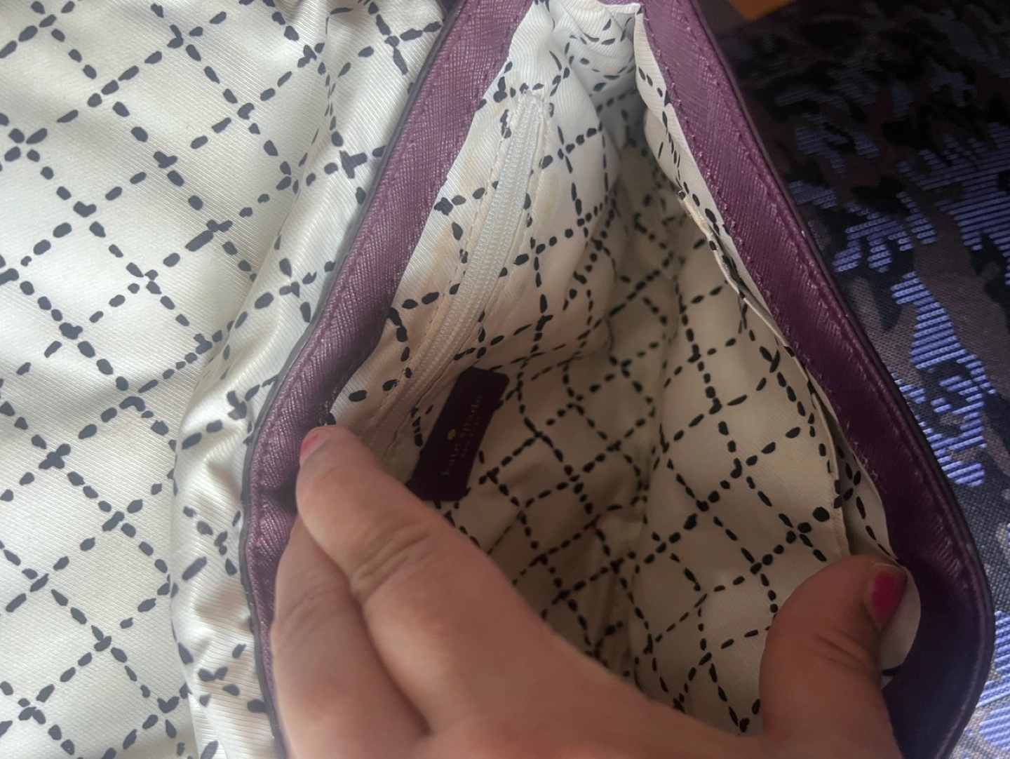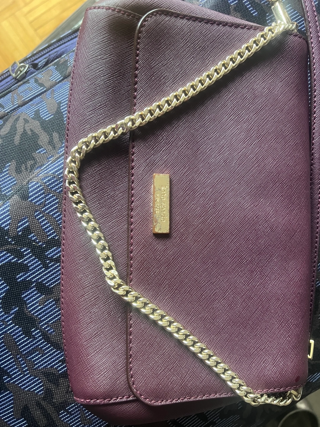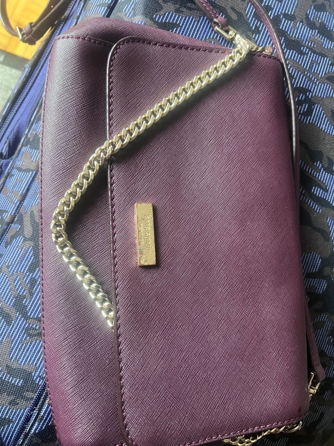 747Beautiful dark purple crossbody bag. Features a gold chain strap and a small interior pocket. Great for everyday use.