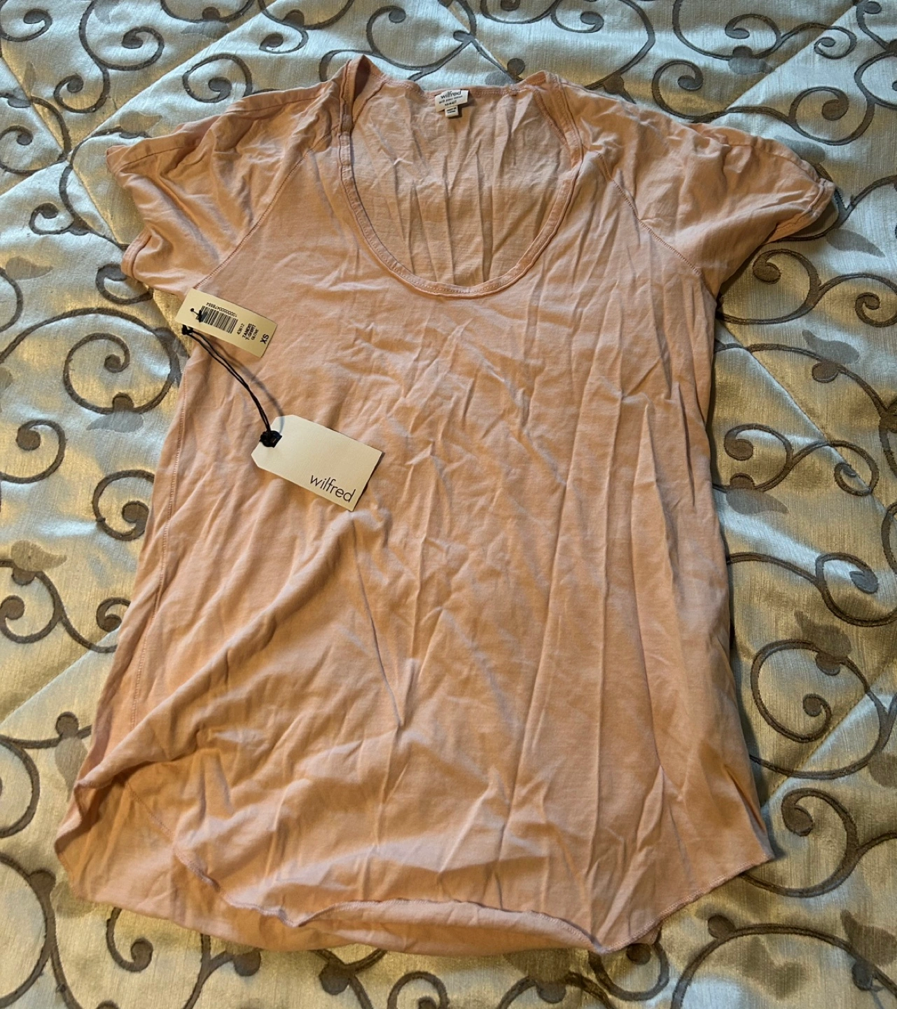 Aritzia/Wilfred blush pink T-shirt. Size XS. Short sleeves, scoop neck. Made of pima cotton. New with tag attached.