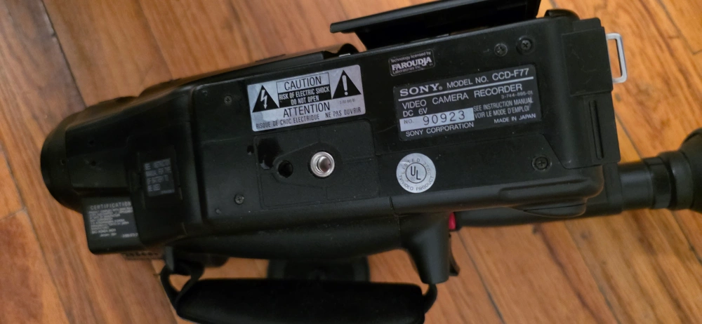 Sony Handycam Video8 camcorder. Hi-Fi Stereo. CCD. Model CCD-F77. needs a battery and untested as is for parts only not sure anything about it dont know if it works you are buying as is this was in a storage unit I purchased