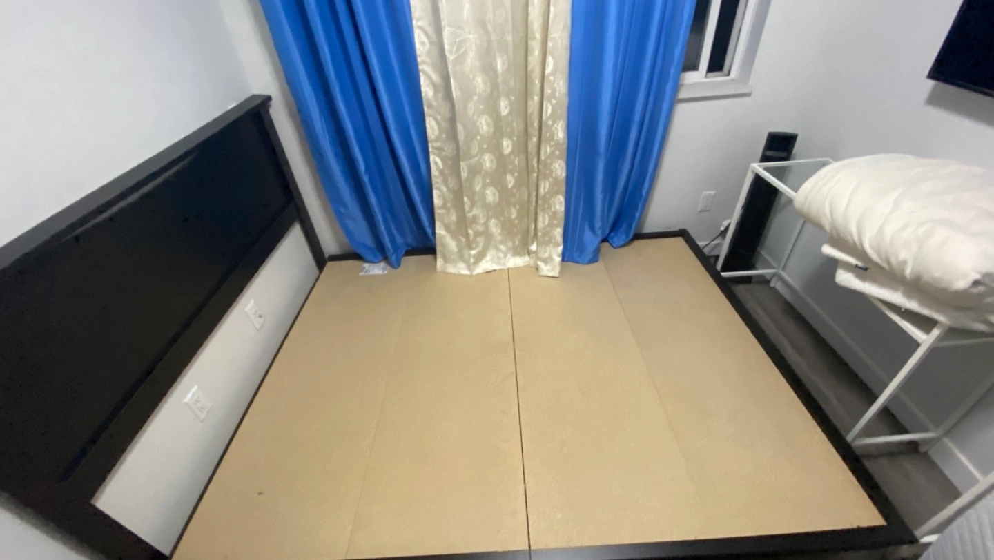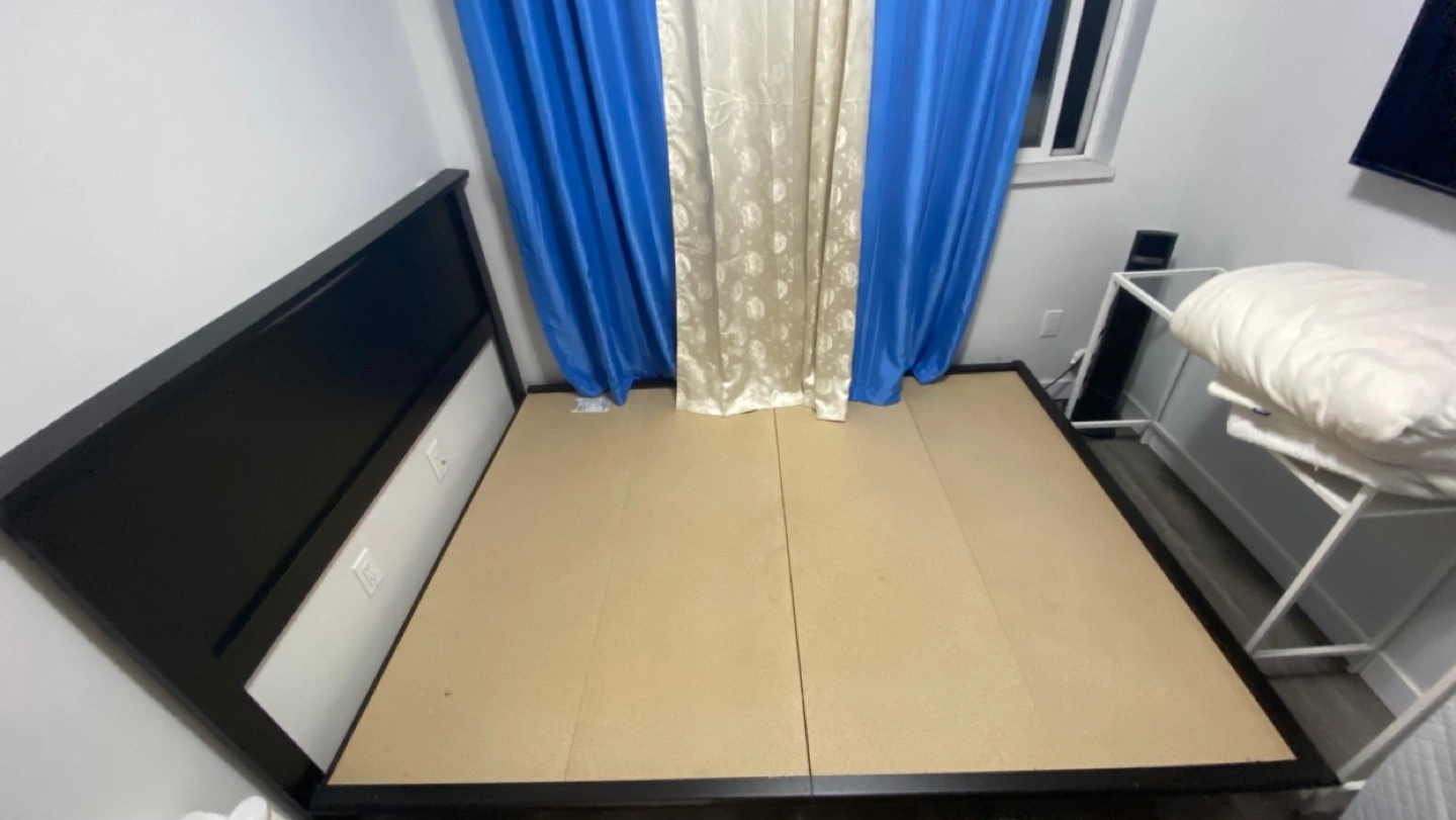 Queen size platform bed frame. Black colour. Minimal assembly required. Good condition.