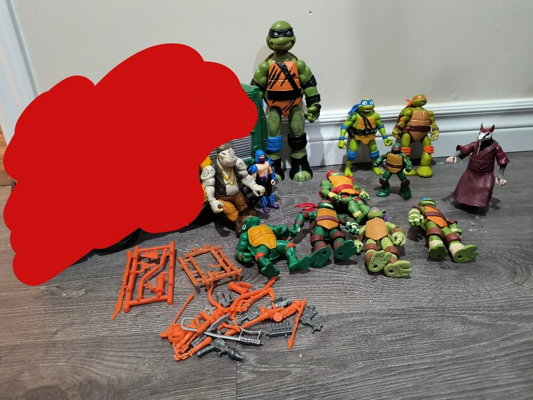 Large lot of Teenage Mutant Ninja Turtle toys.