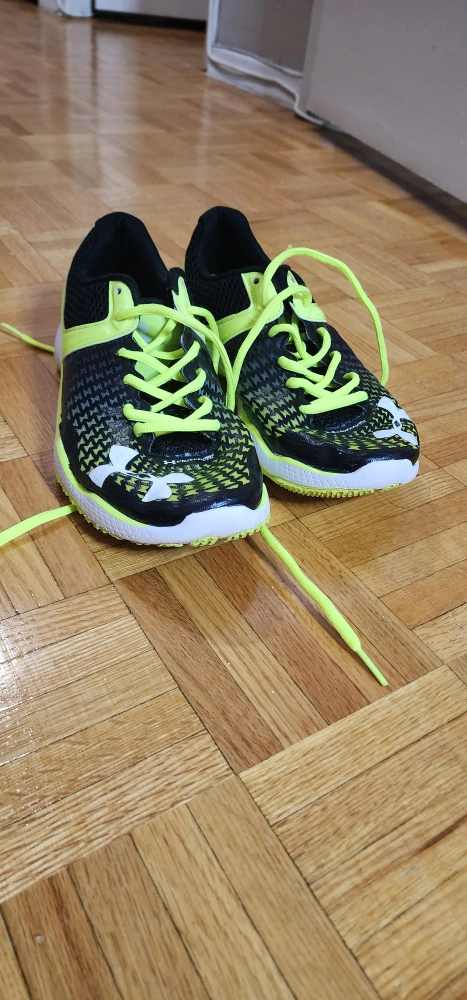 Pair of used Under Armour running shoes. Black and neon yellow. Good condition. Laces included.