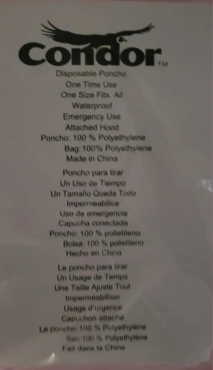 Disposable poncho. FREE. I got these for free. And now I am passing them along. I have 21 packs of these. Take all. See more information in photo. # freestyle
