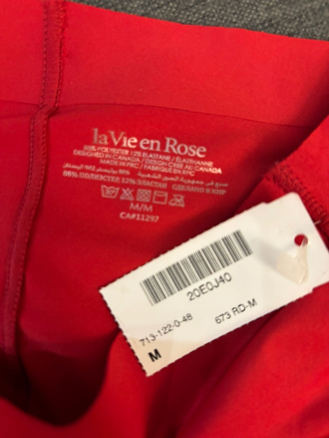 La Vie en Rose Red Lace Trim High-Waisted Briefs - Size Medium