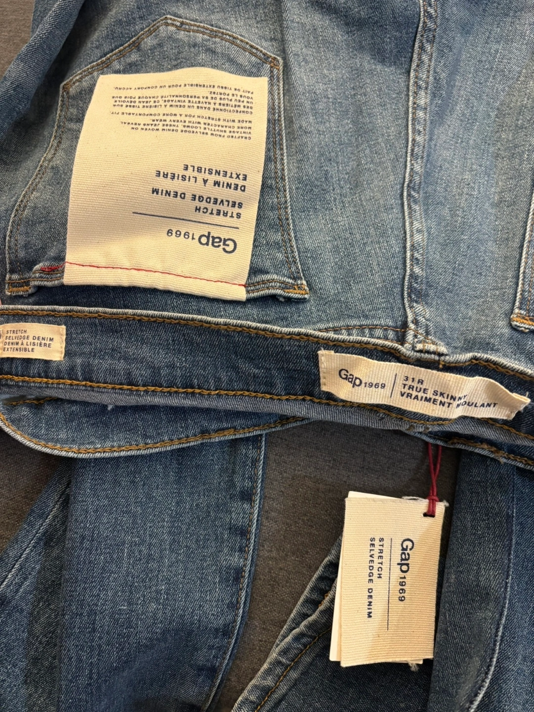 Women's Gap 1969 True Skinny jeans. Size 31R. Light wash denim. Stretch selvedge denim. Excellent condition. Never worn.