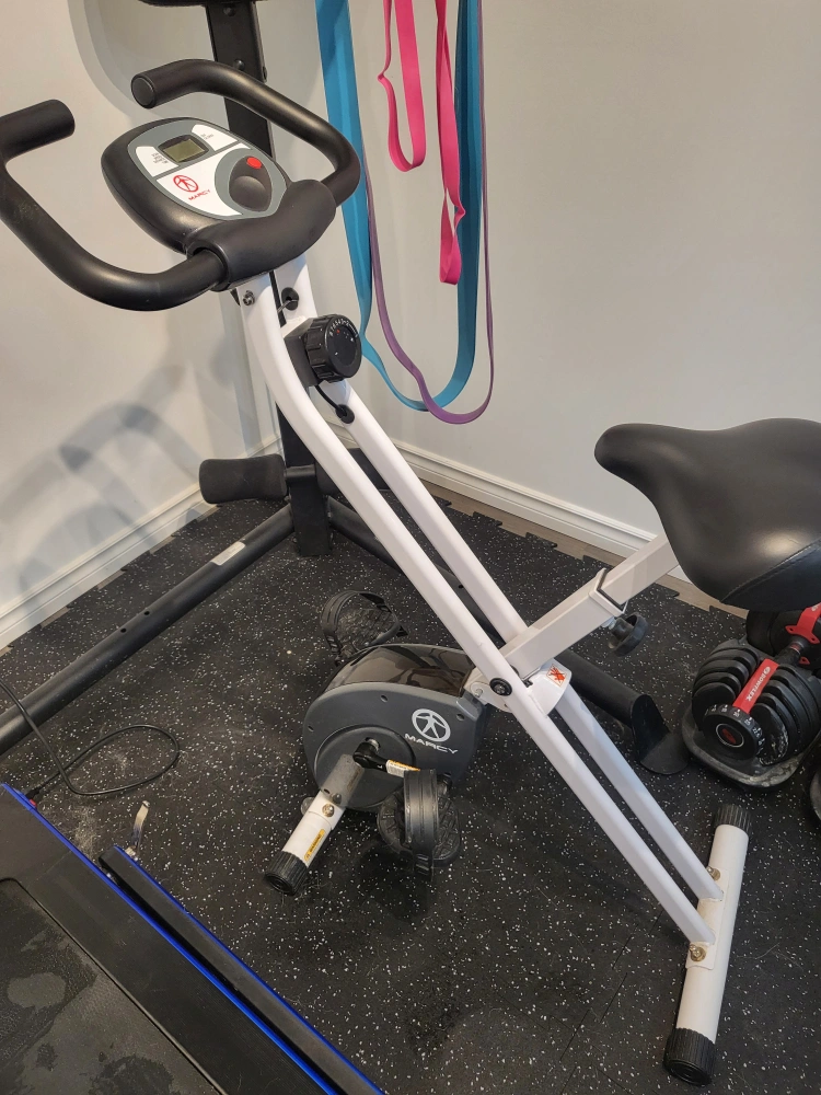 Used Marcy exercise bike. Great for home workouts. Features digital monitor showing speed, distance, time, and calories burned. Adjustable resistance. Compact design. if you buy my treadmill together, I can do all together for 200